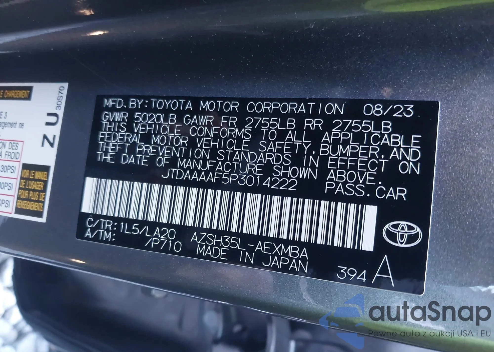 • VIN JTDAAAAF5P3014222