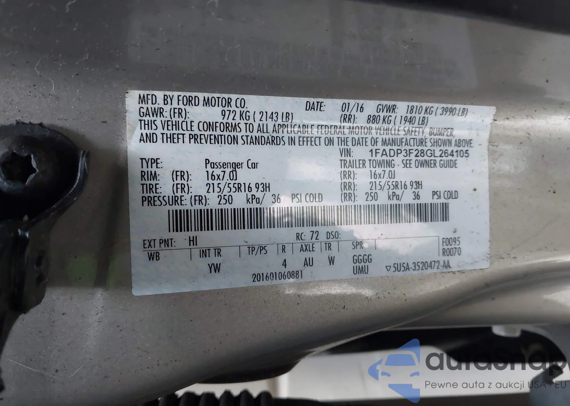 LOT: 43941664 VIN: JTDAAAAF5P3014222