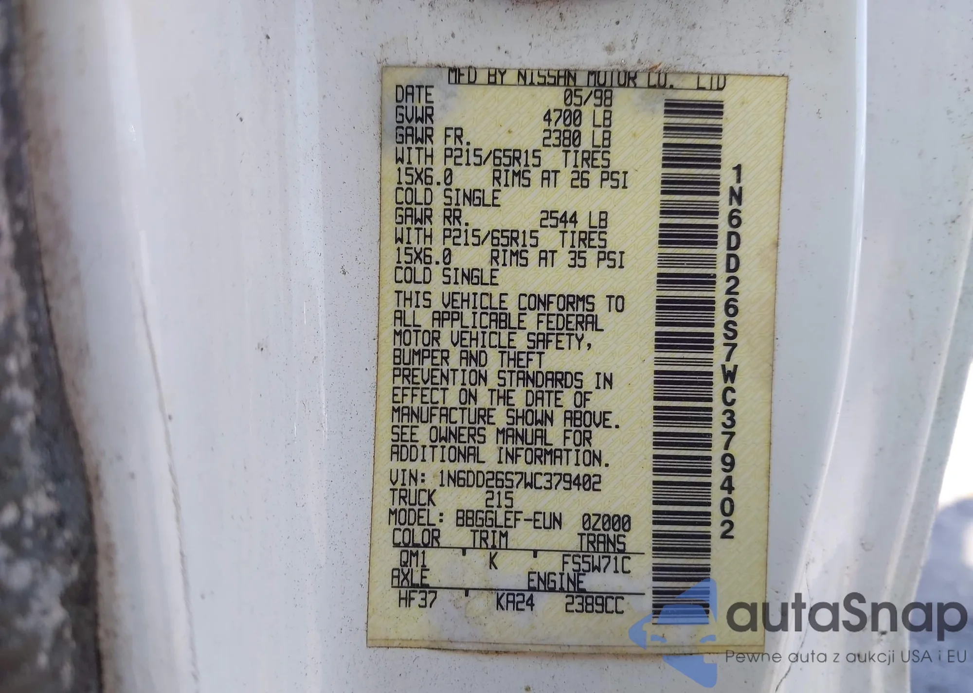 • VIN 1N6DD26S7WC379402