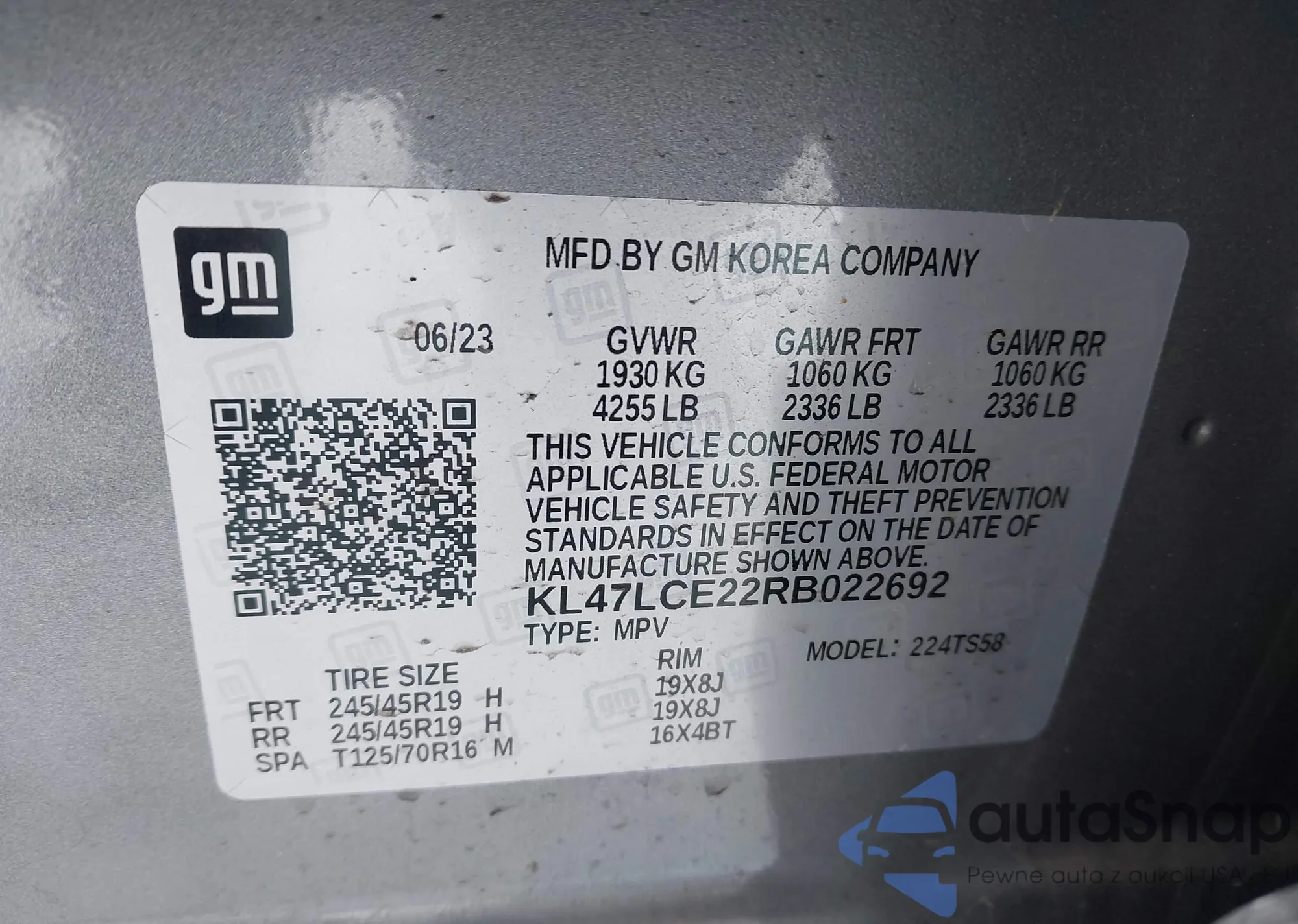 • VIN KL47LCE22RB022692
