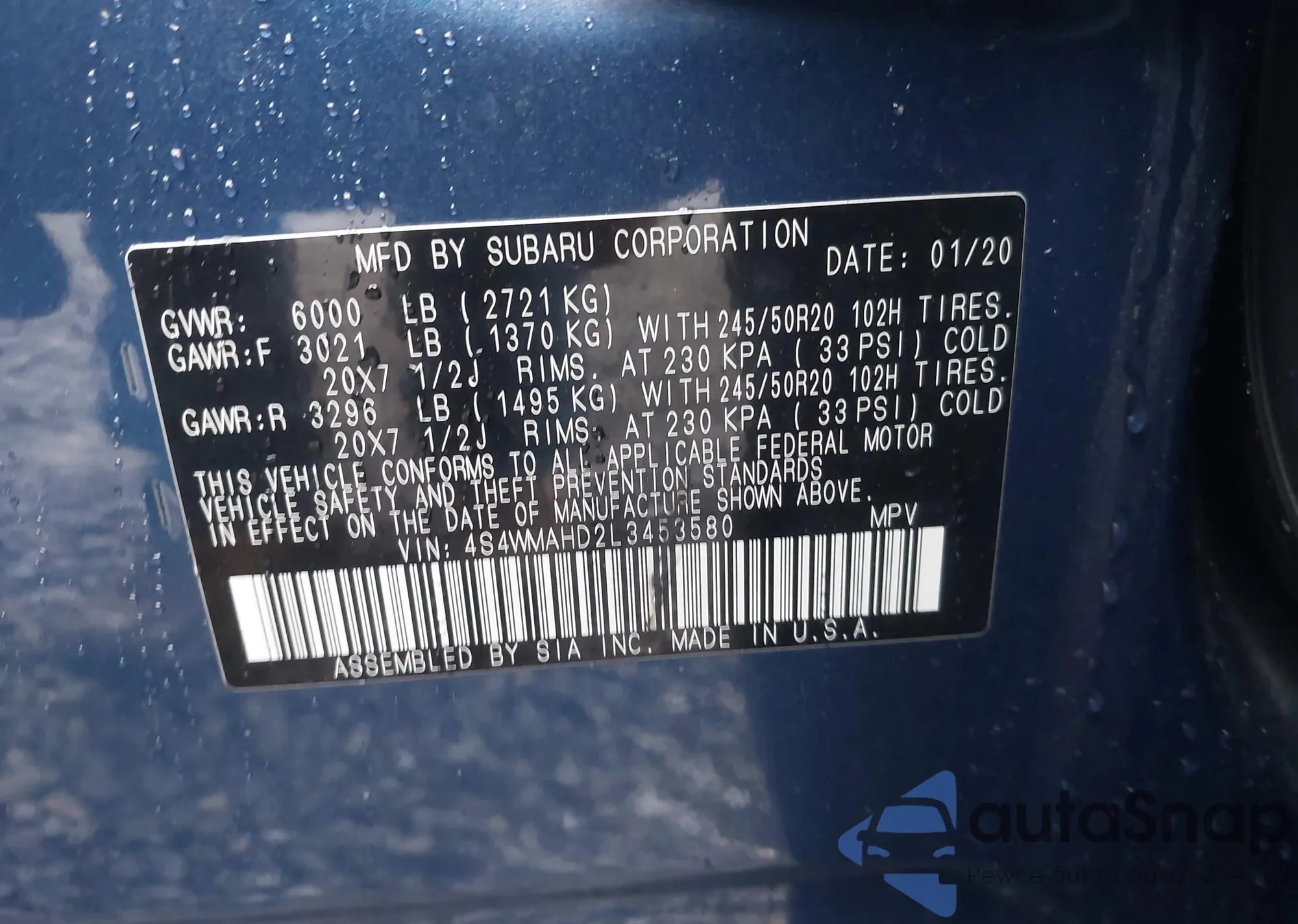 LOT: 43781458 VIN: 4S4WMAHD2L3453580