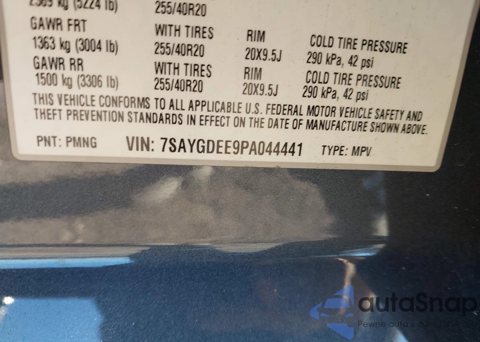 • VIN 7SAYGDEE9PA044441