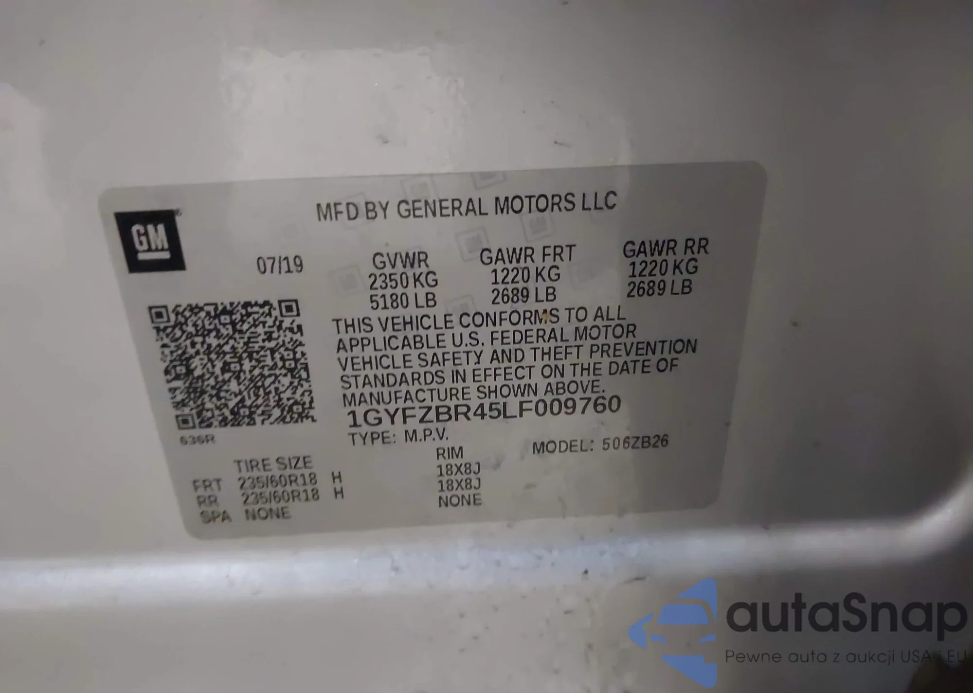 • VIN 1GYFZBR45LF009760