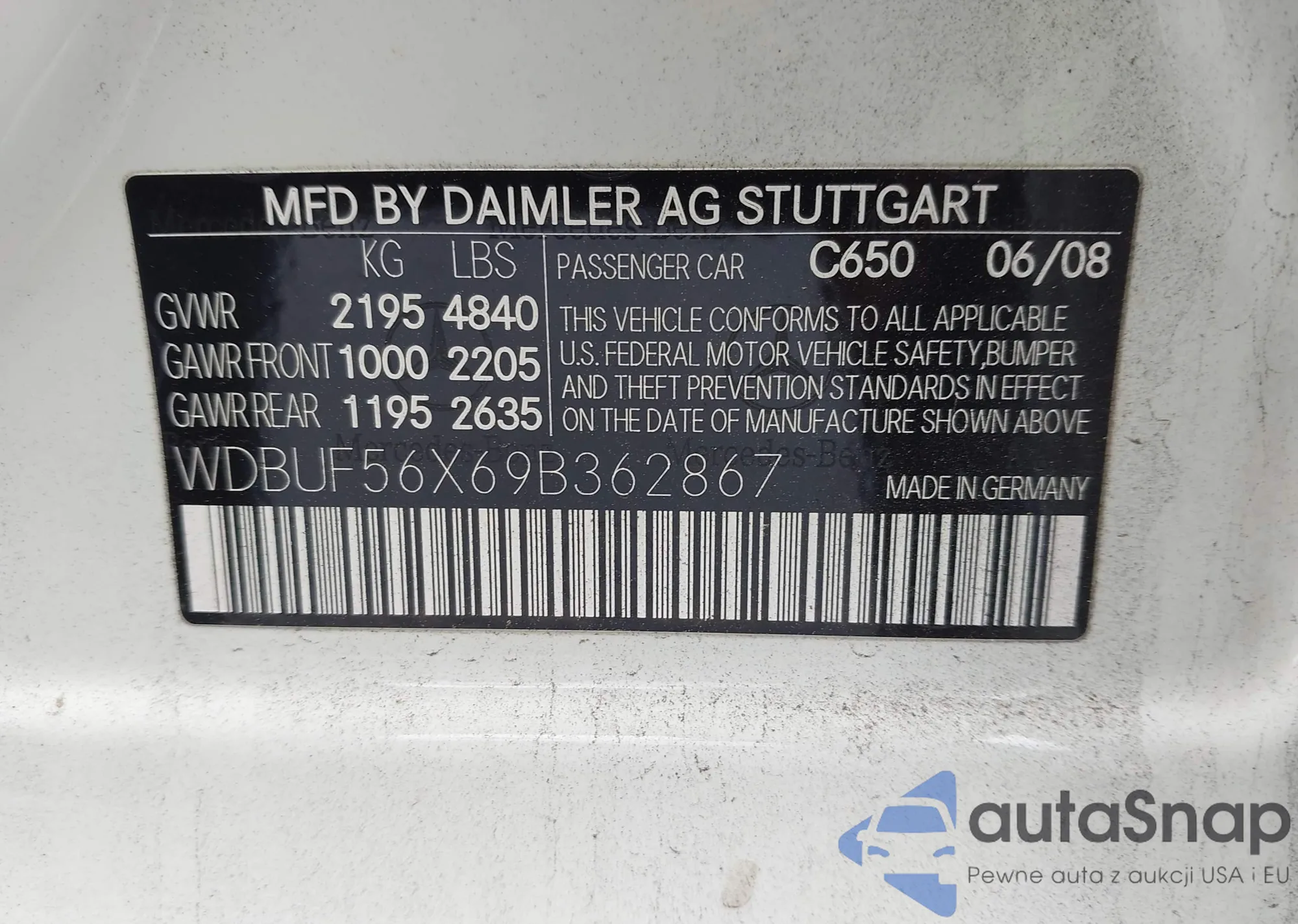 LOT: 44149353 VIN: WDBUF56X69B362867