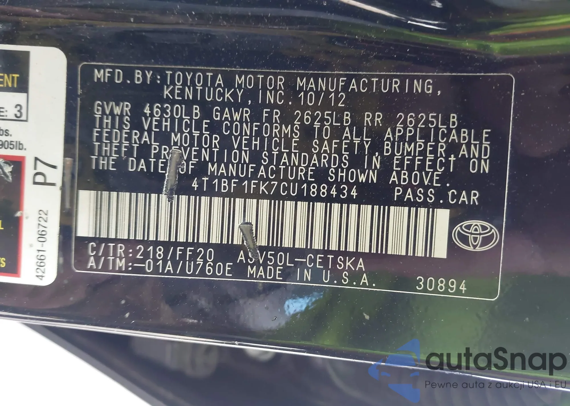 LOT: 44170407 VIN: JTDKN3DU7A0055247