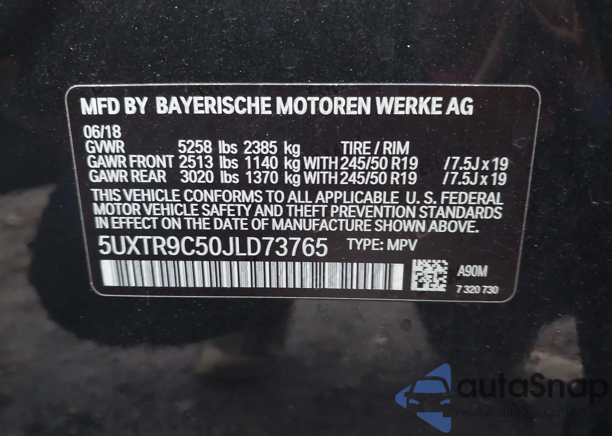 • VIN 5UXTR9C50JLD73765