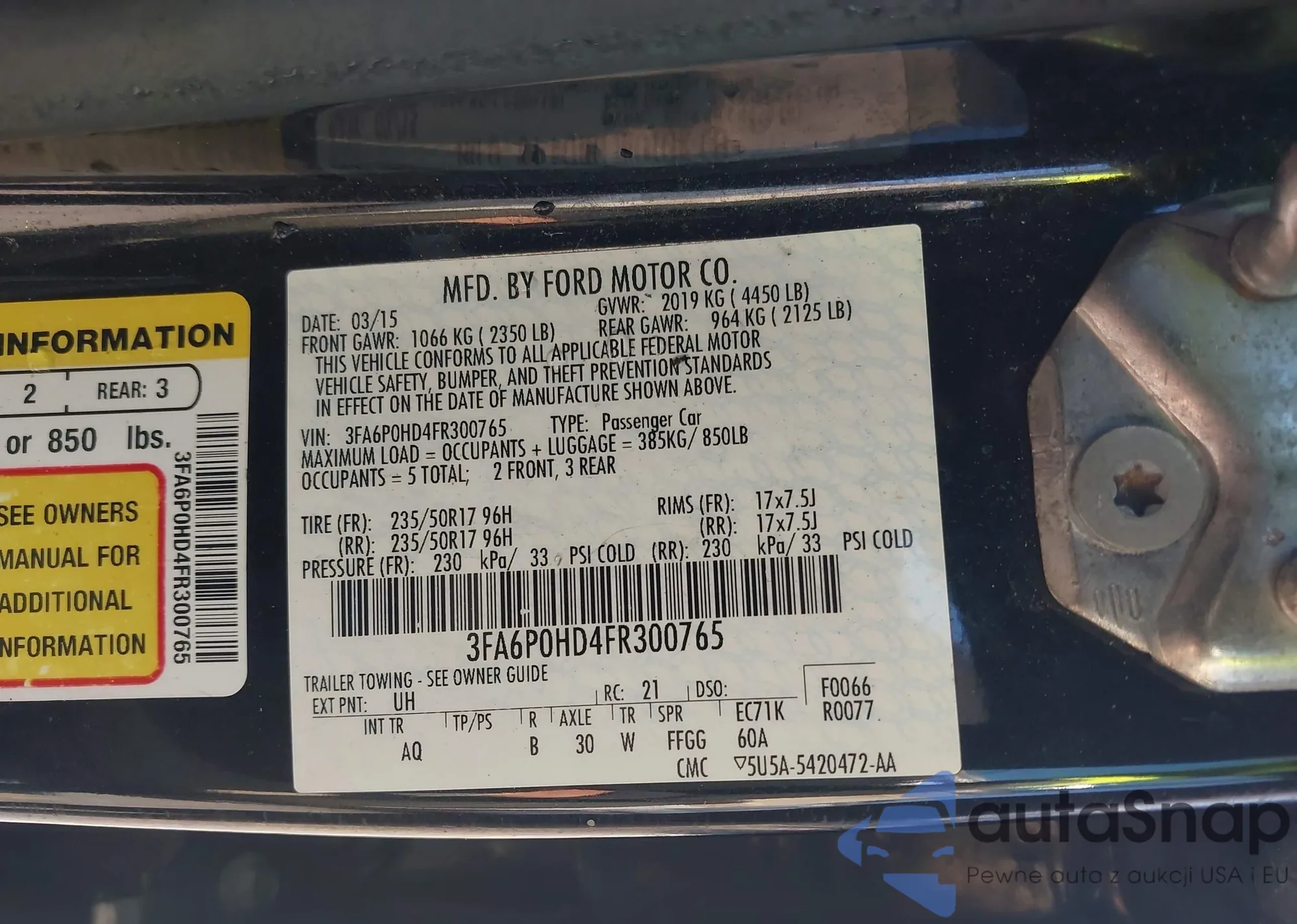 • VIN 3FA6P0HD4FR300765
