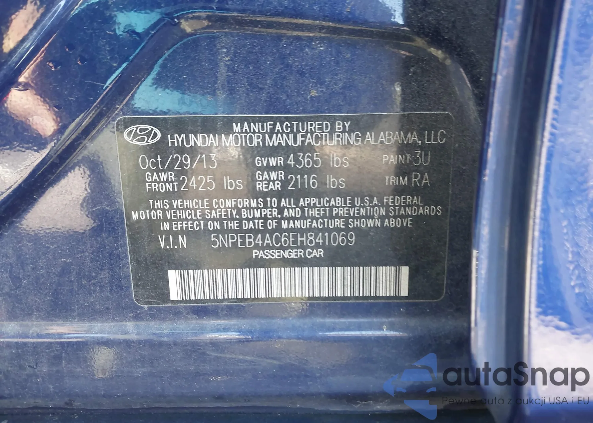 • VIN 5NPEB4AC6EH841069