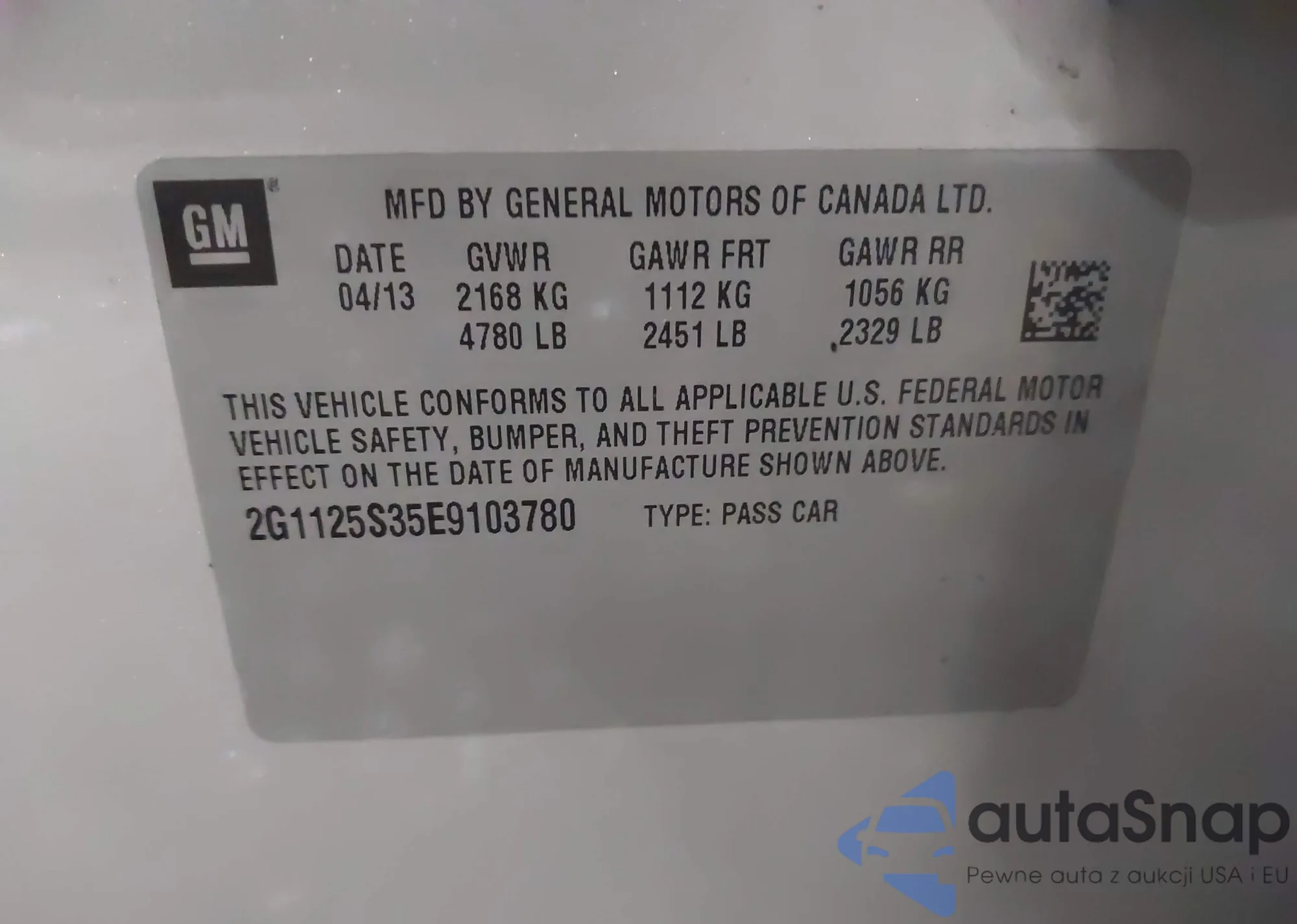 • VIN 2G1125S35E9103780