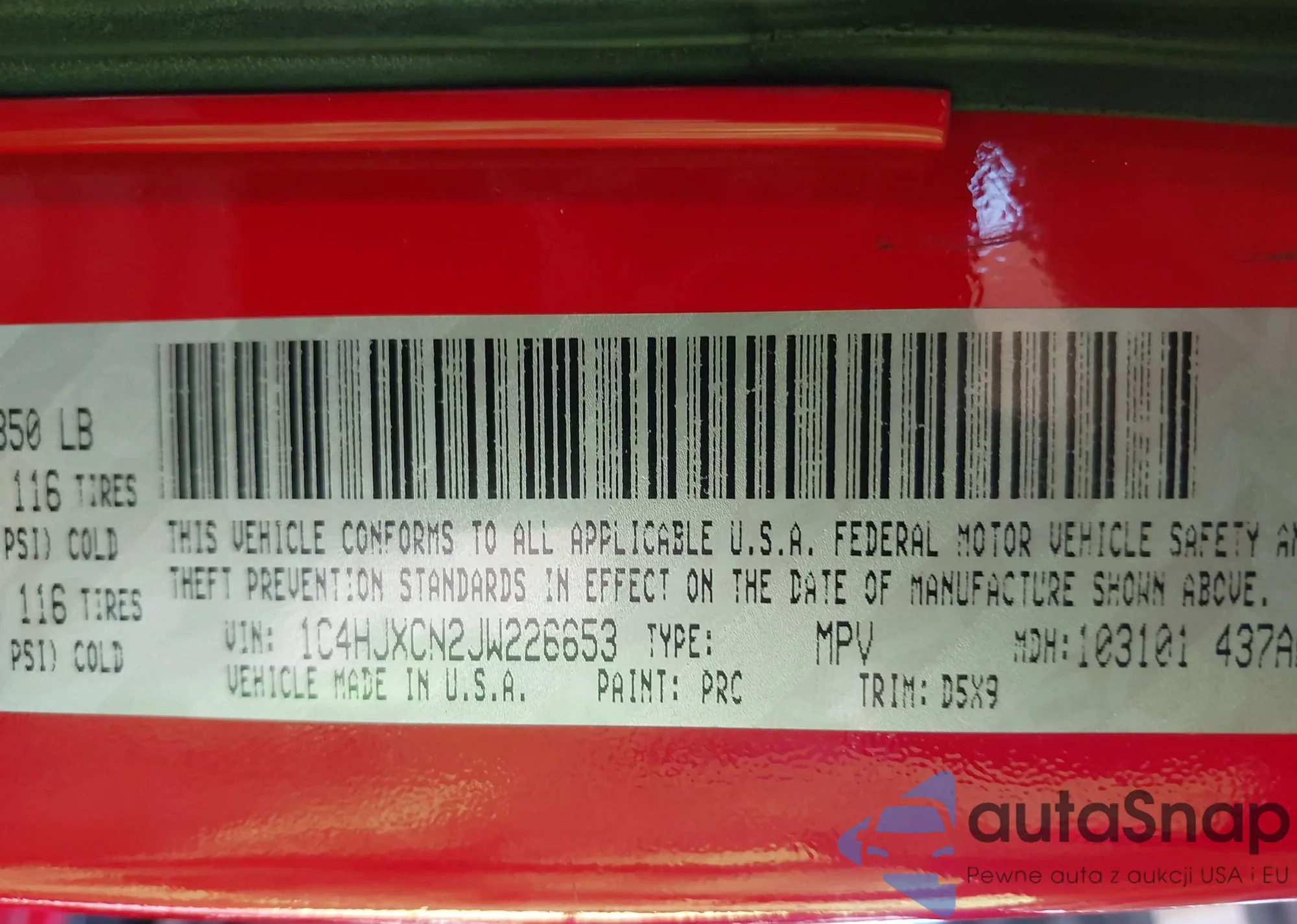 • VIN 1C4HJXCN2JW226653