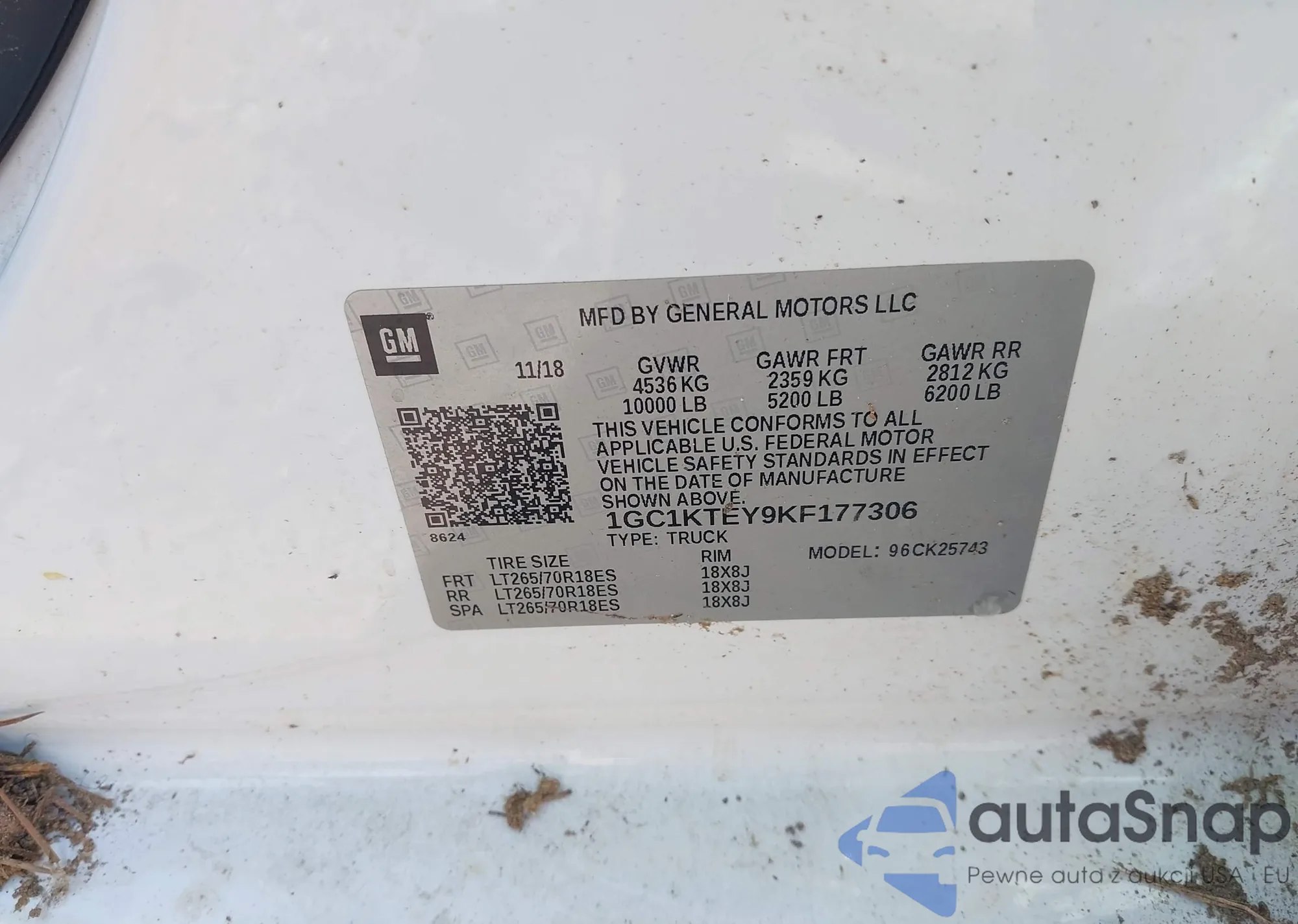 LOT: 43897106 VIN: 1GC1KTEY9KF177306