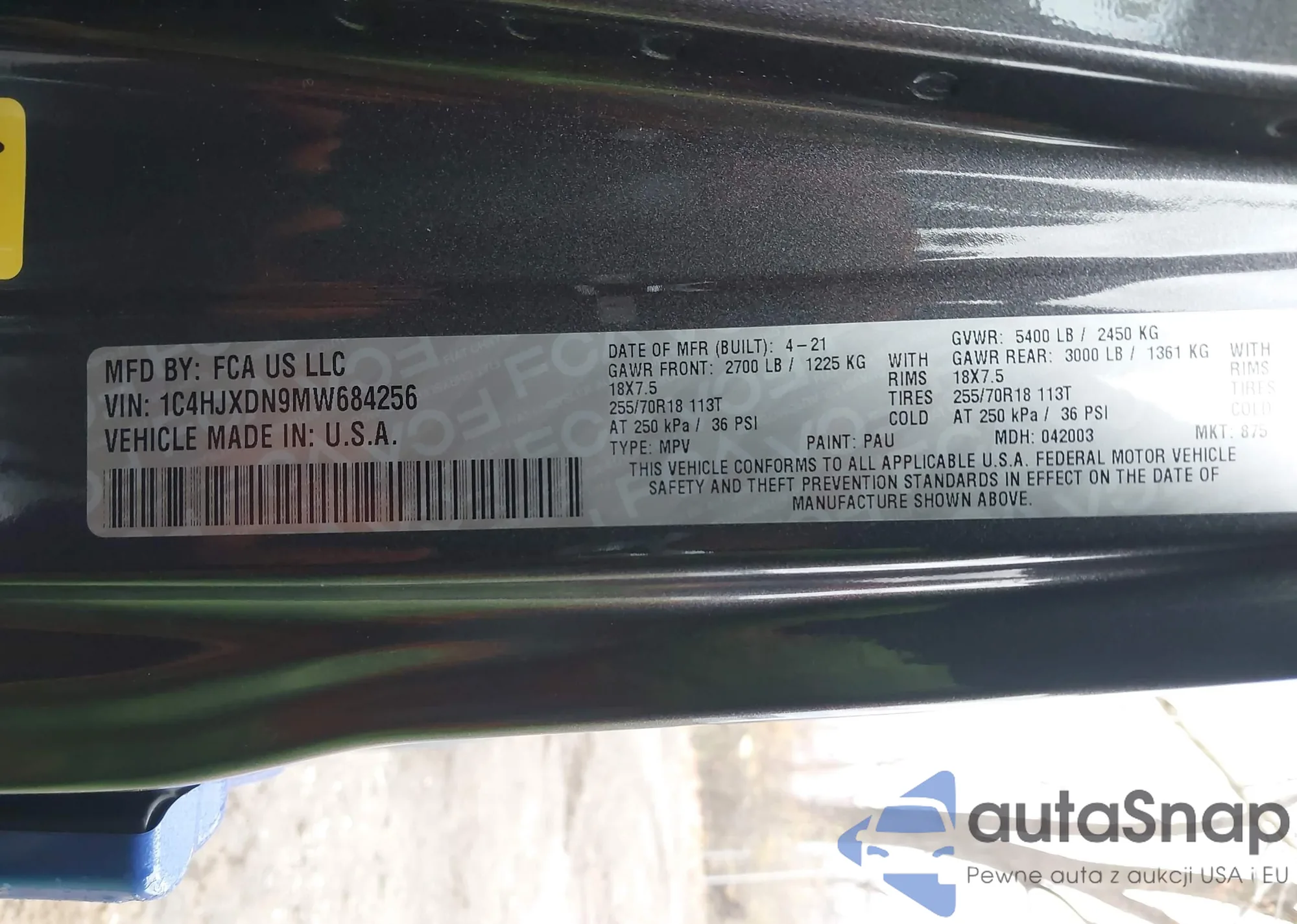 • VIN 1C4HJXDN9MW684256