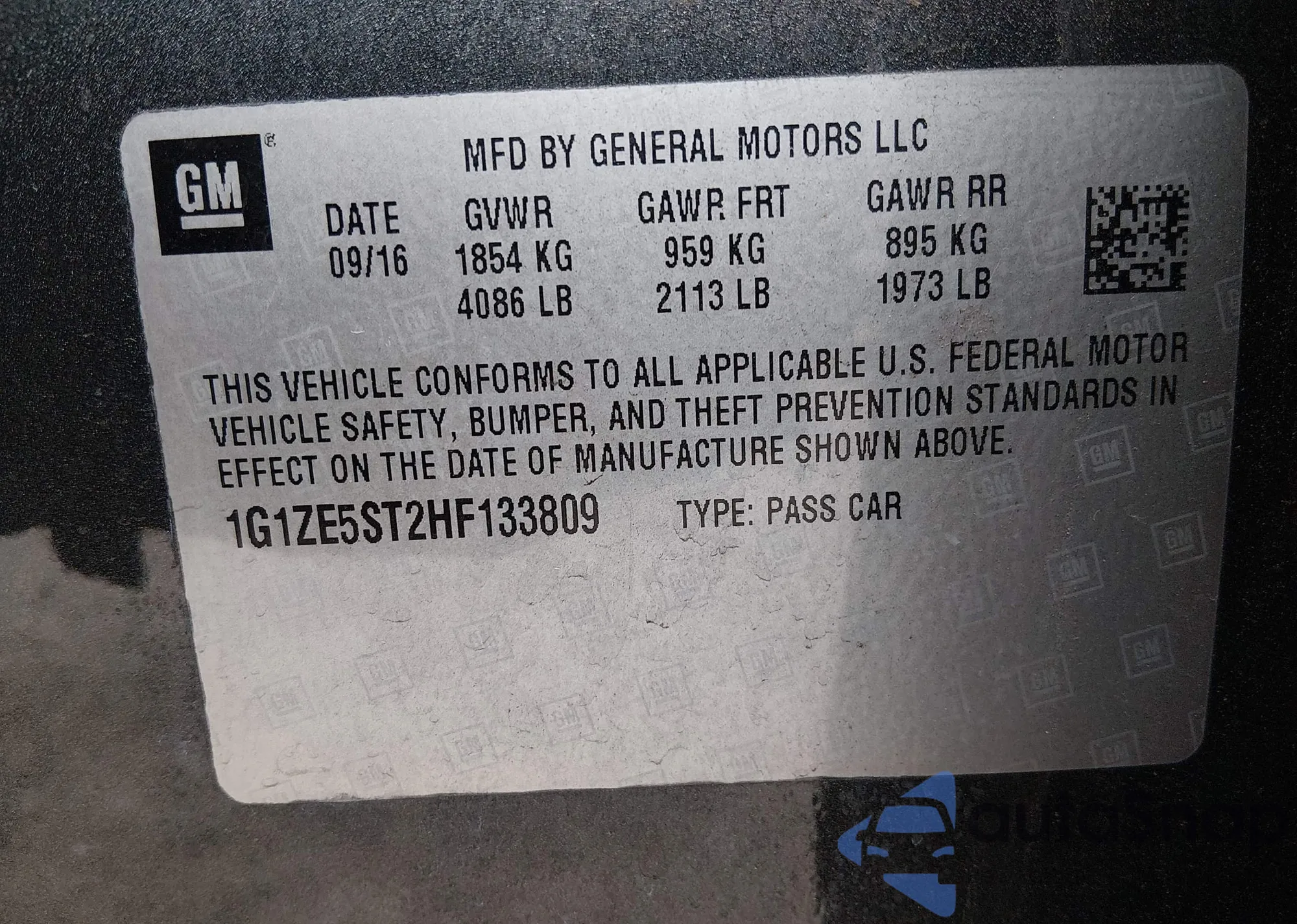 • VIN 1G1ZE5ST2HF133809