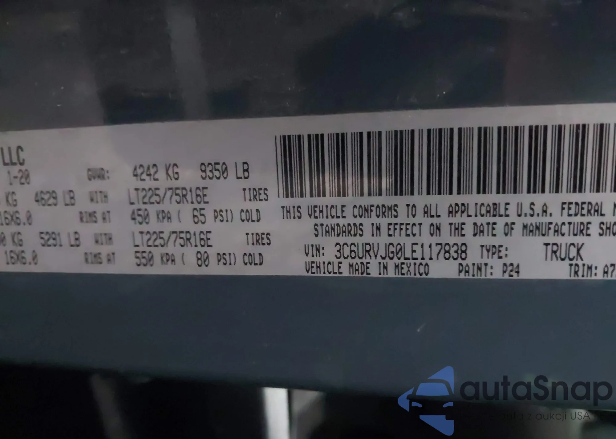 • VIN 3C6URVJG0LE117838