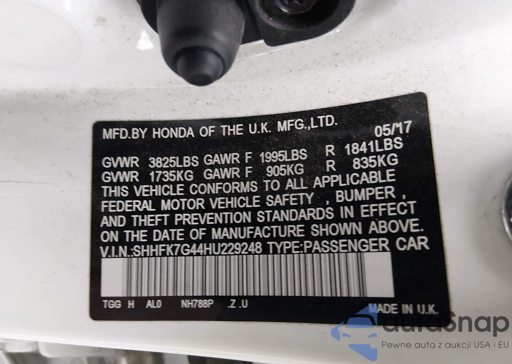 • VIN SHHFK7G44HU229248