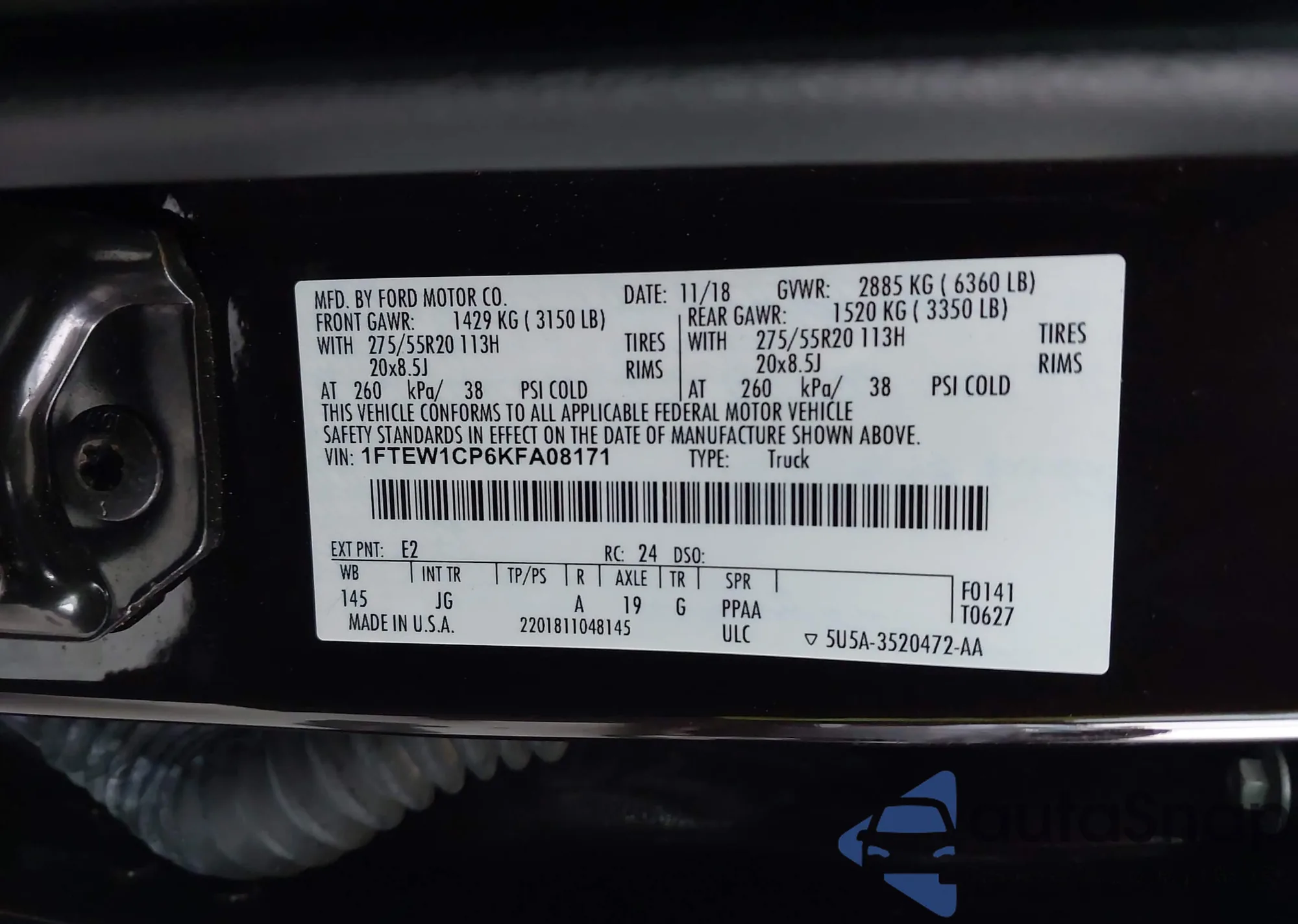 • VIN 1FTEW1CP6KFA08171