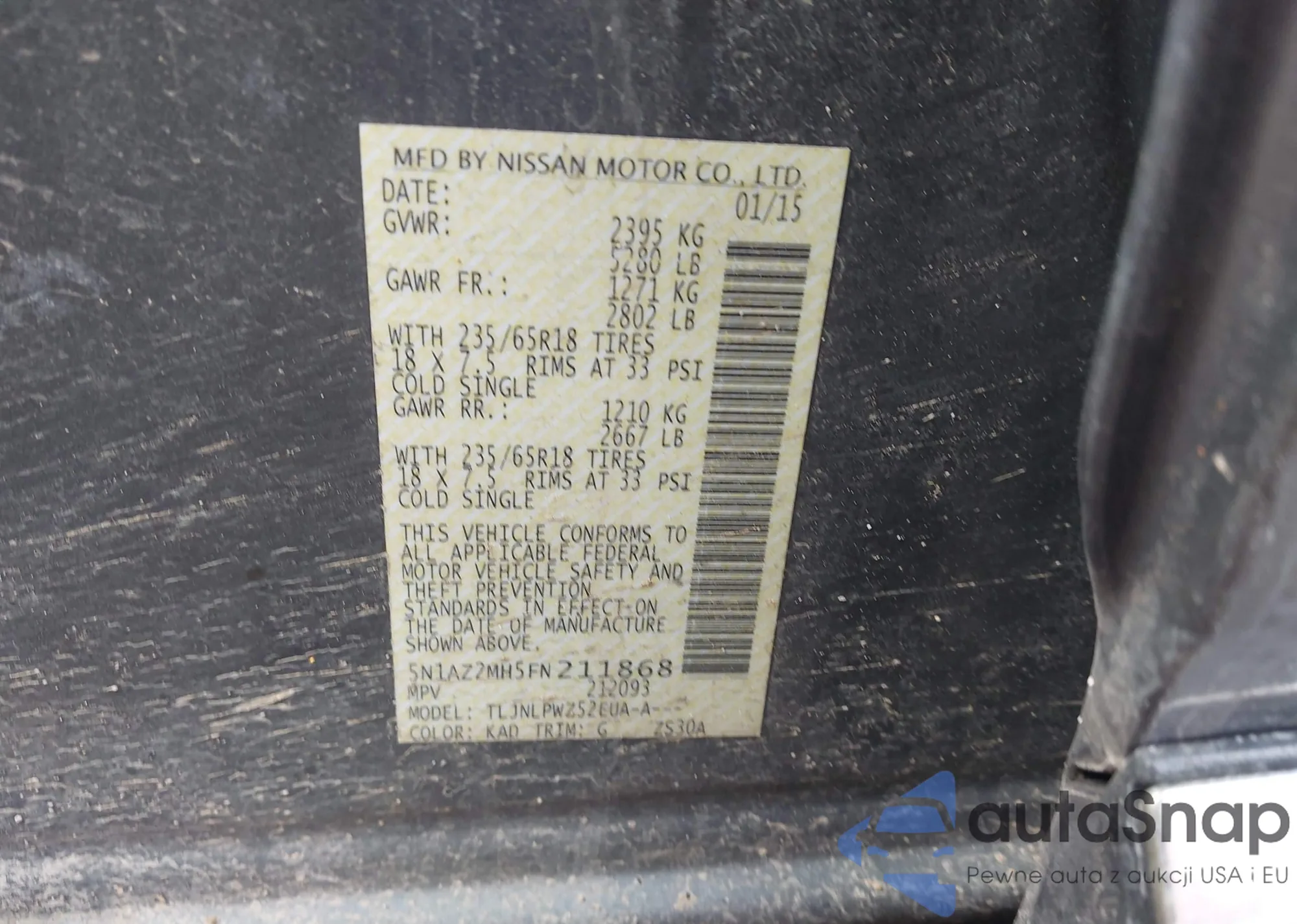 • VIN 5N1AZ2MH5FN211868
