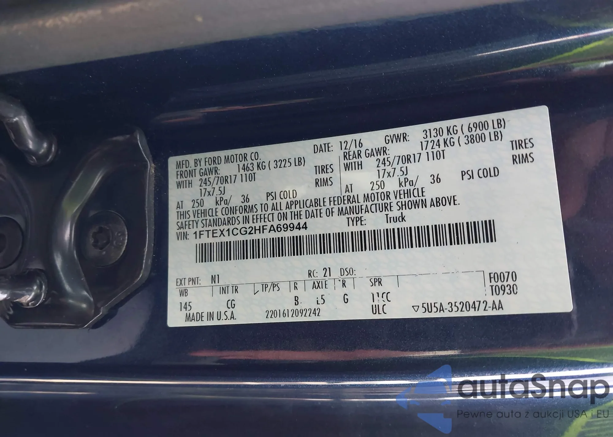 LOT: 44083276 VIN: 1FTEX1CG2HFA69944
