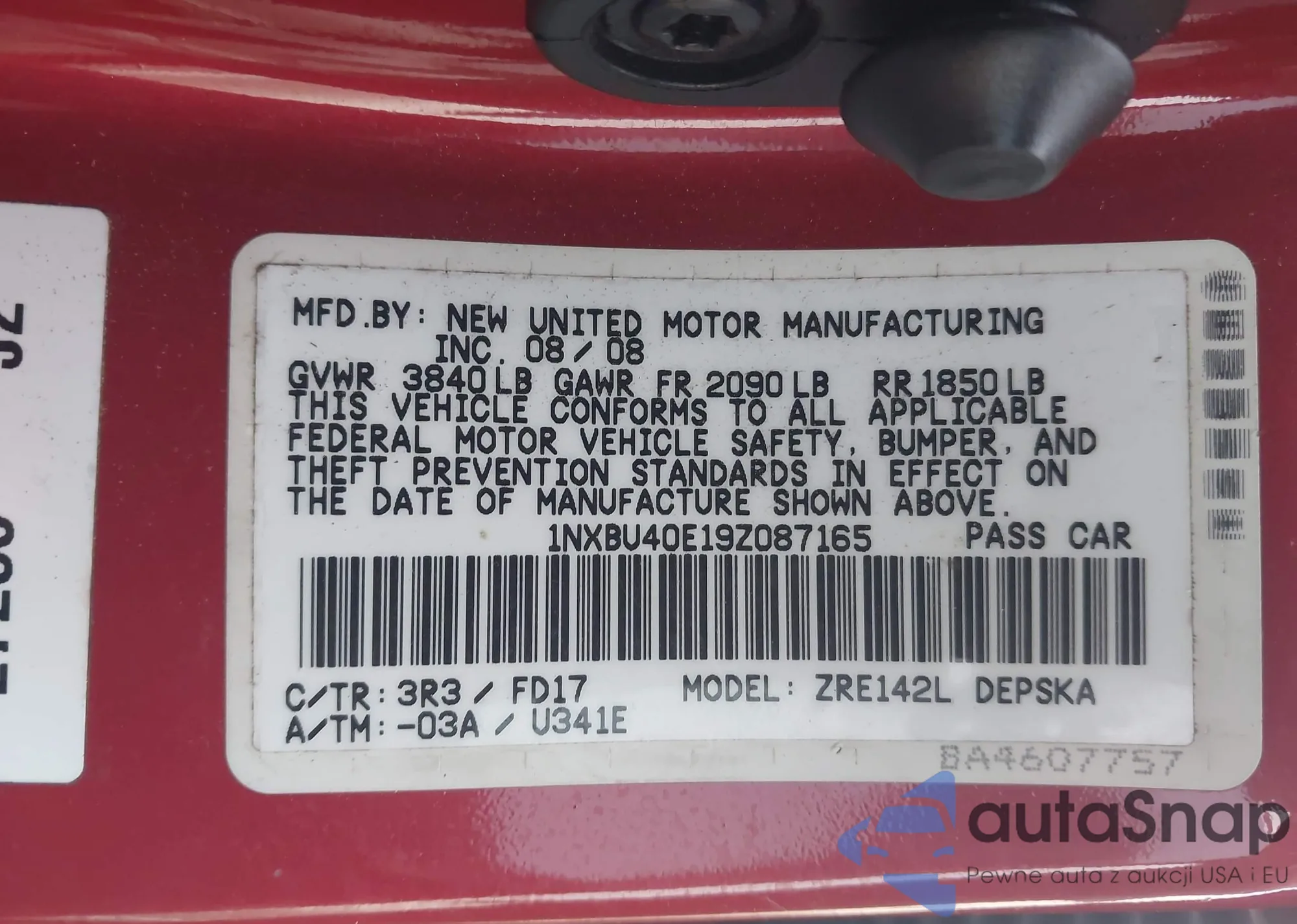 LOT: 44084328 VIN: 1NXBU40E19Z087165