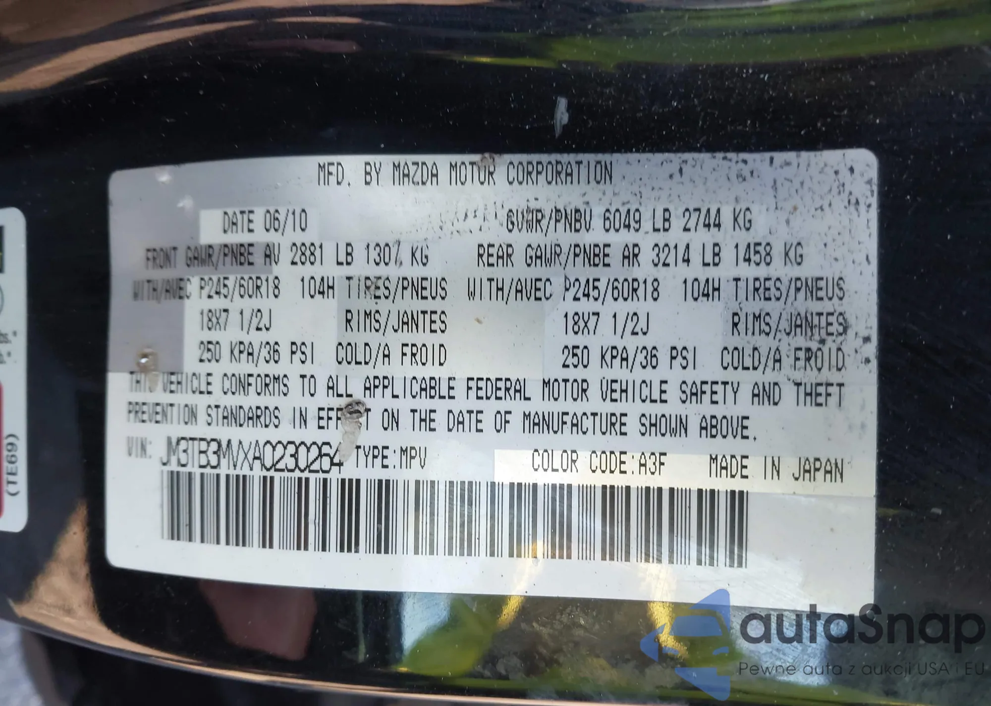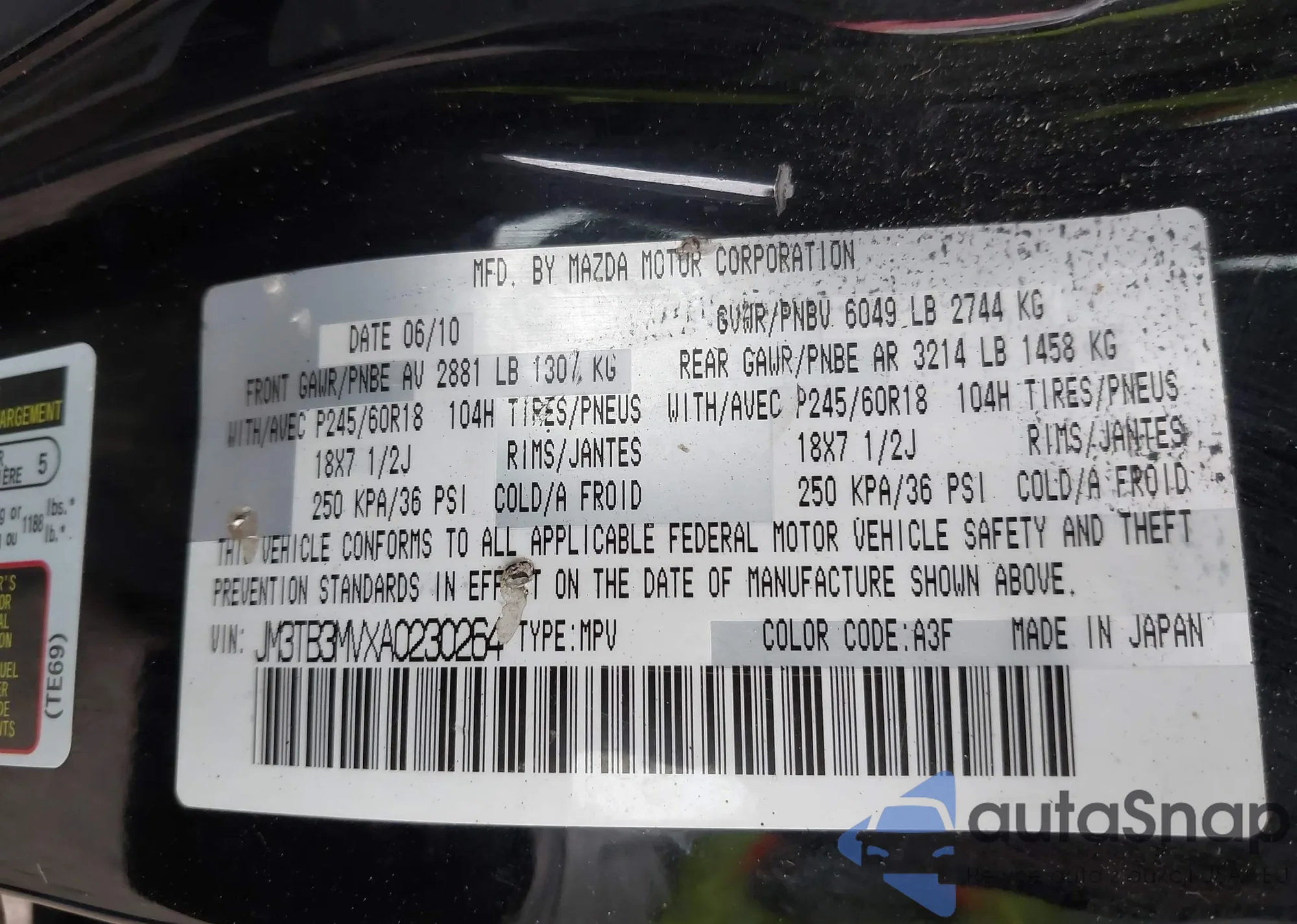 • VIN JM3TB3MVXA0230264