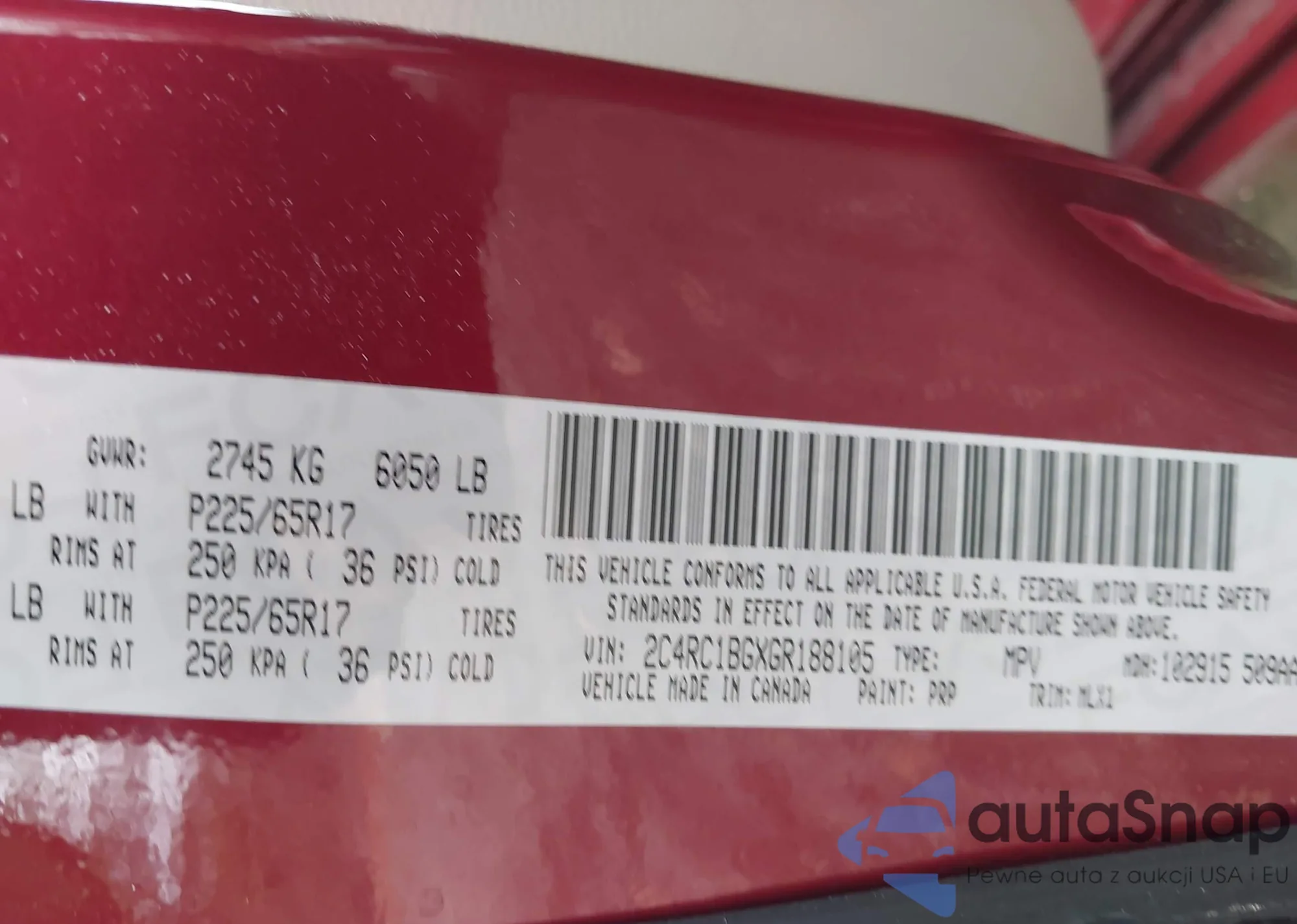 • VIN 2C4RC1BGXGR188105