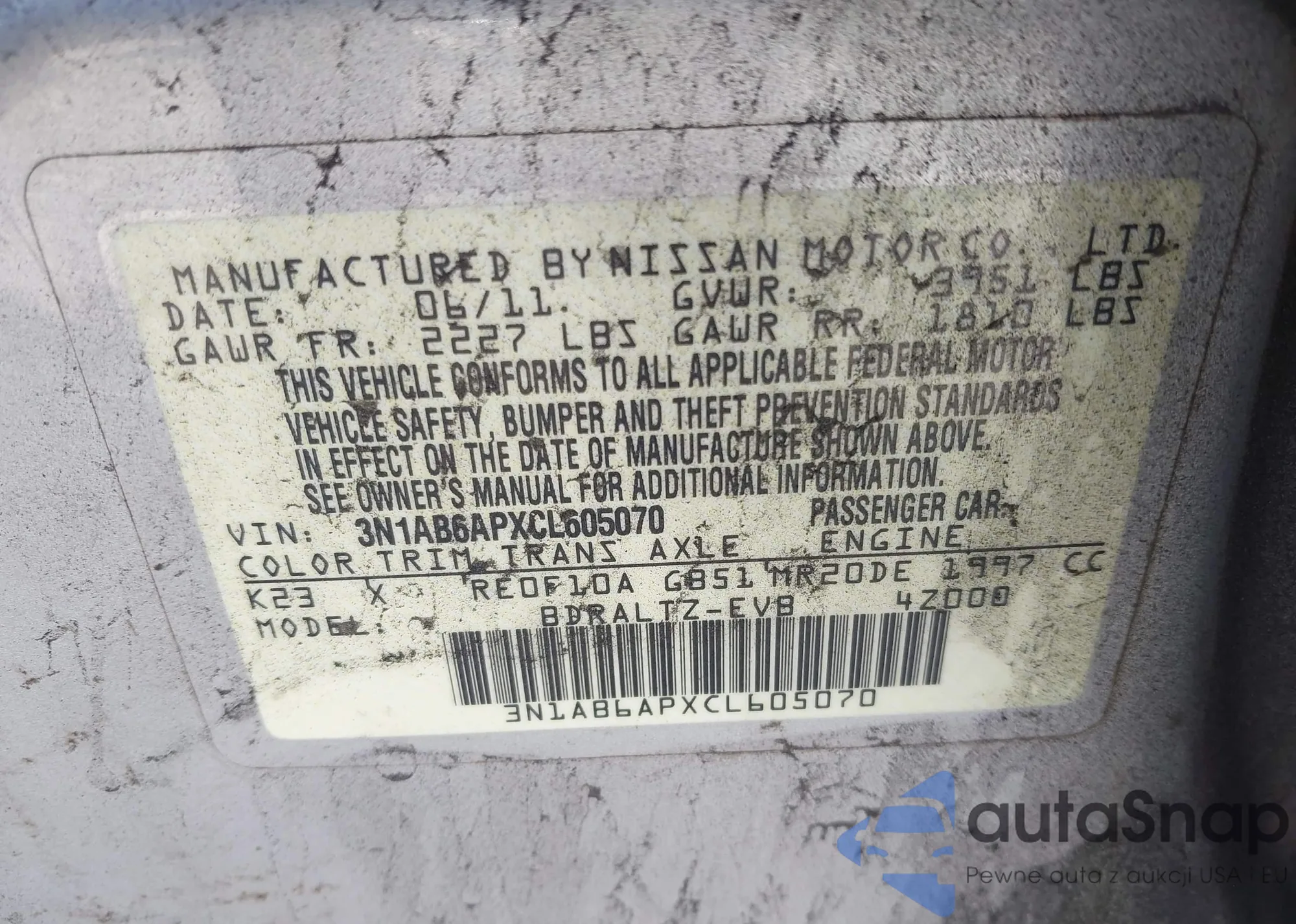 • VIN 3N1AB6APXCL605070