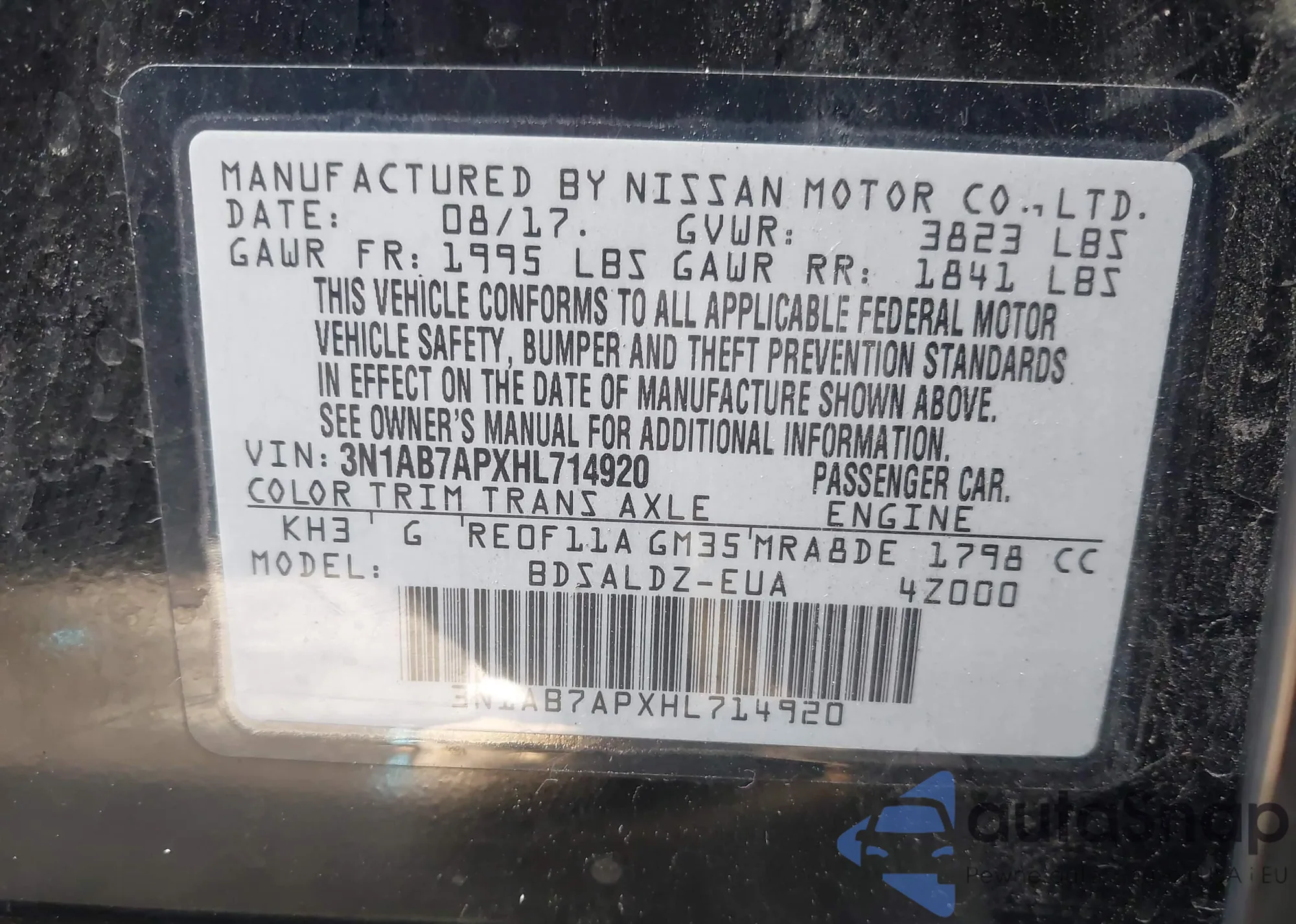 • VIN 3N1AB7APXHL714920