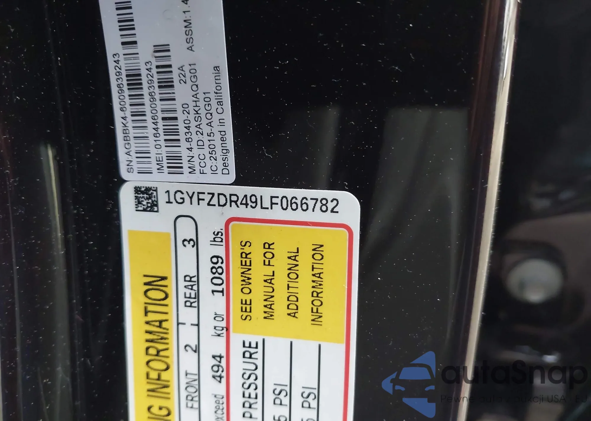 • VIN 1GYFZDR49LF066782