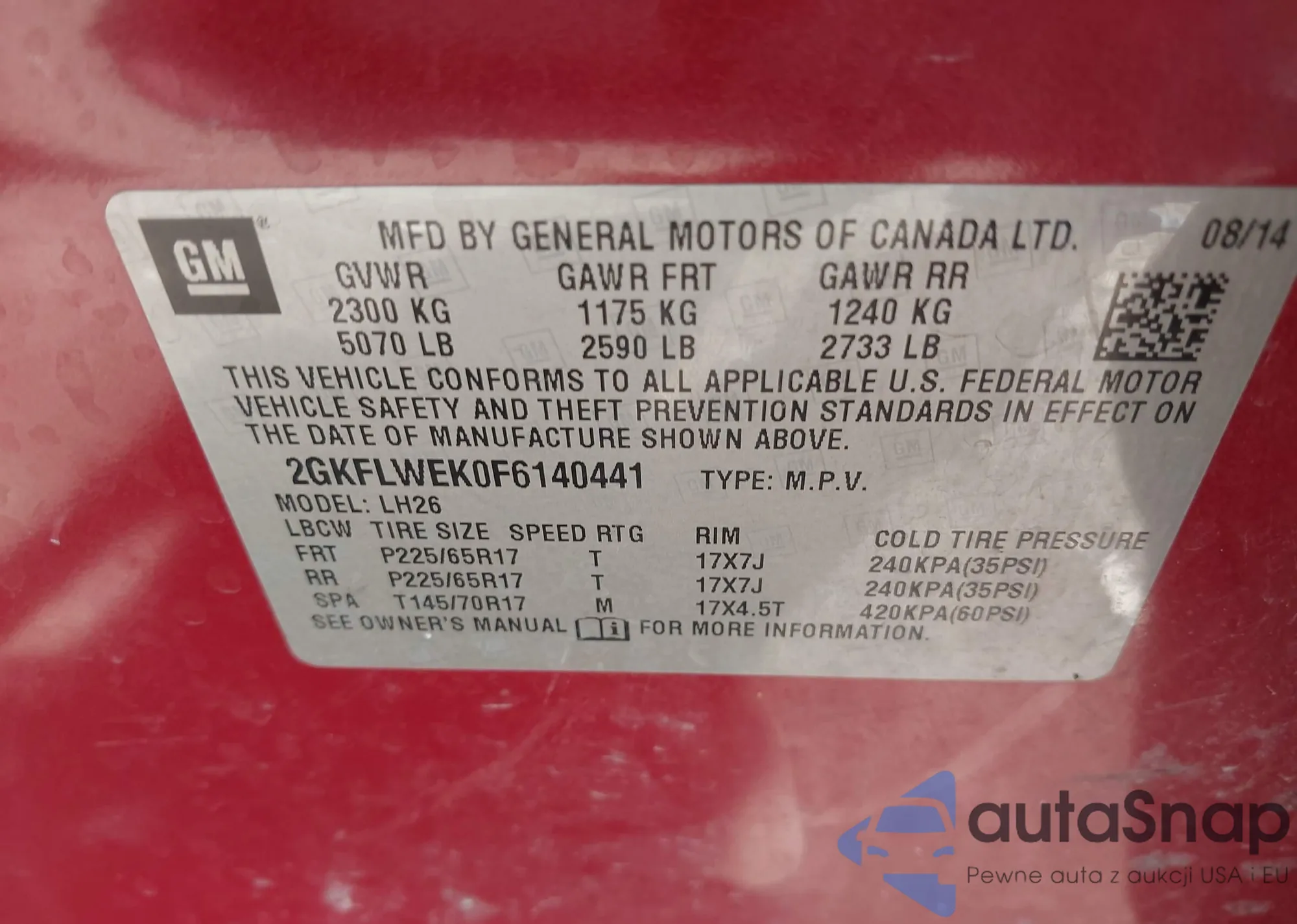• VIN 2GKFLWEK0F6140441