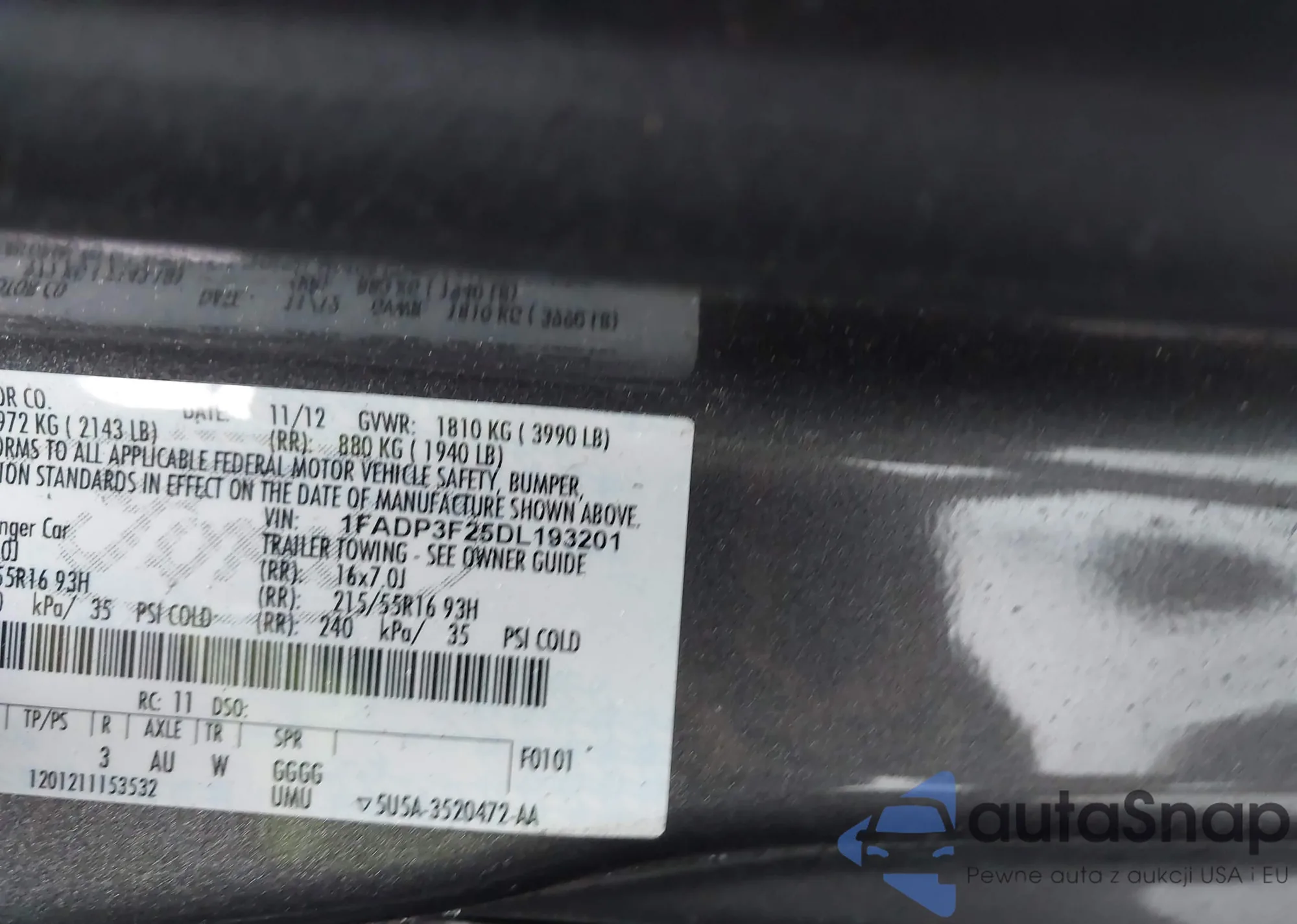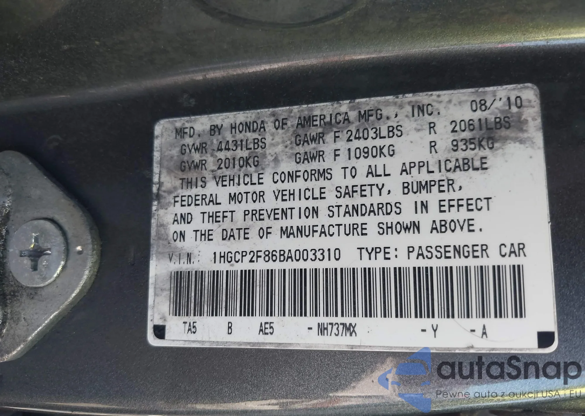 LOT: 43172568 VIN: 1HGCP2F86BA003310
