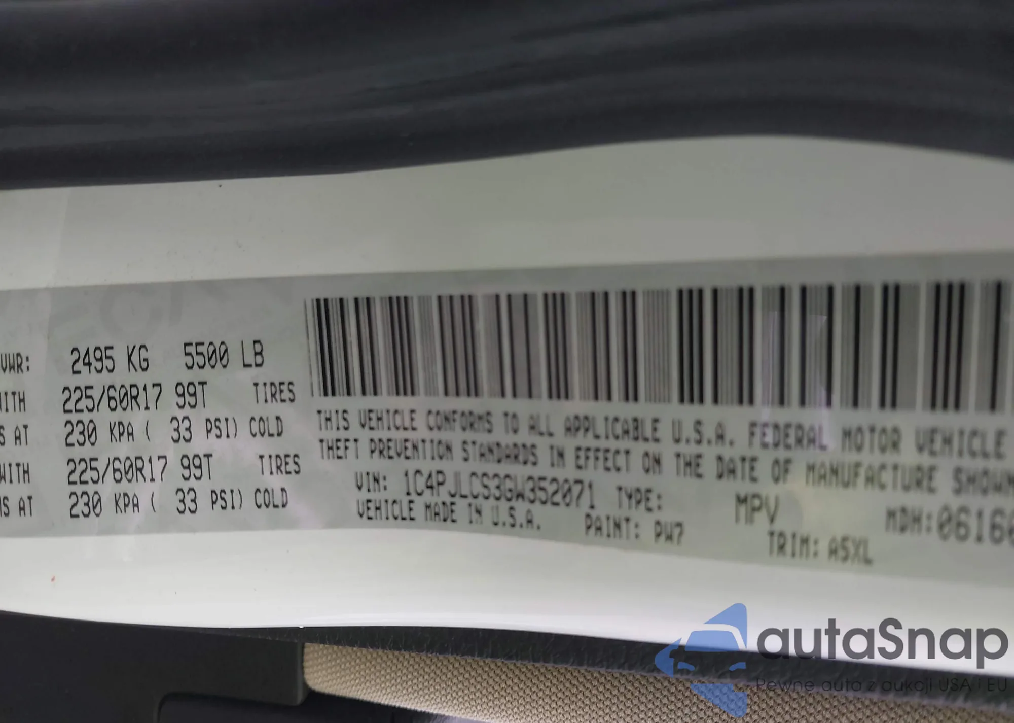 LOT: 43570720 VIN: 1C4PJLCS3GW352071