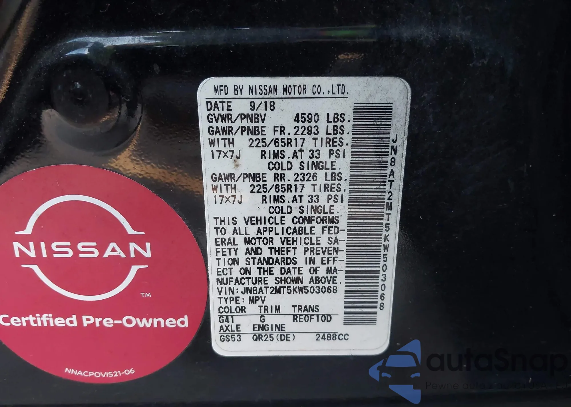 LOT: 43626303 VIN: JN8AT2MT5KW503068