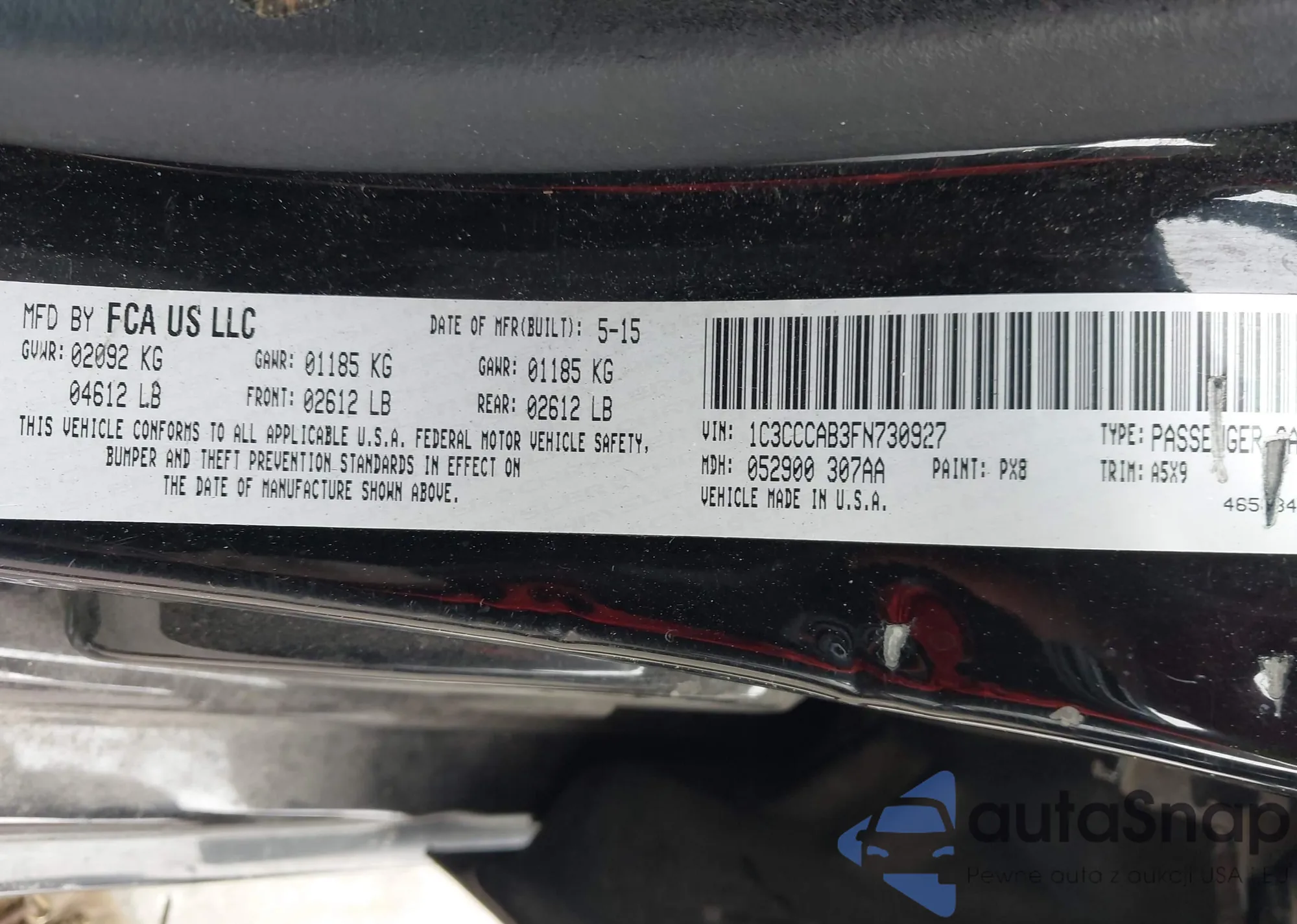 • VIN 1C3CCCAB3FN730927
