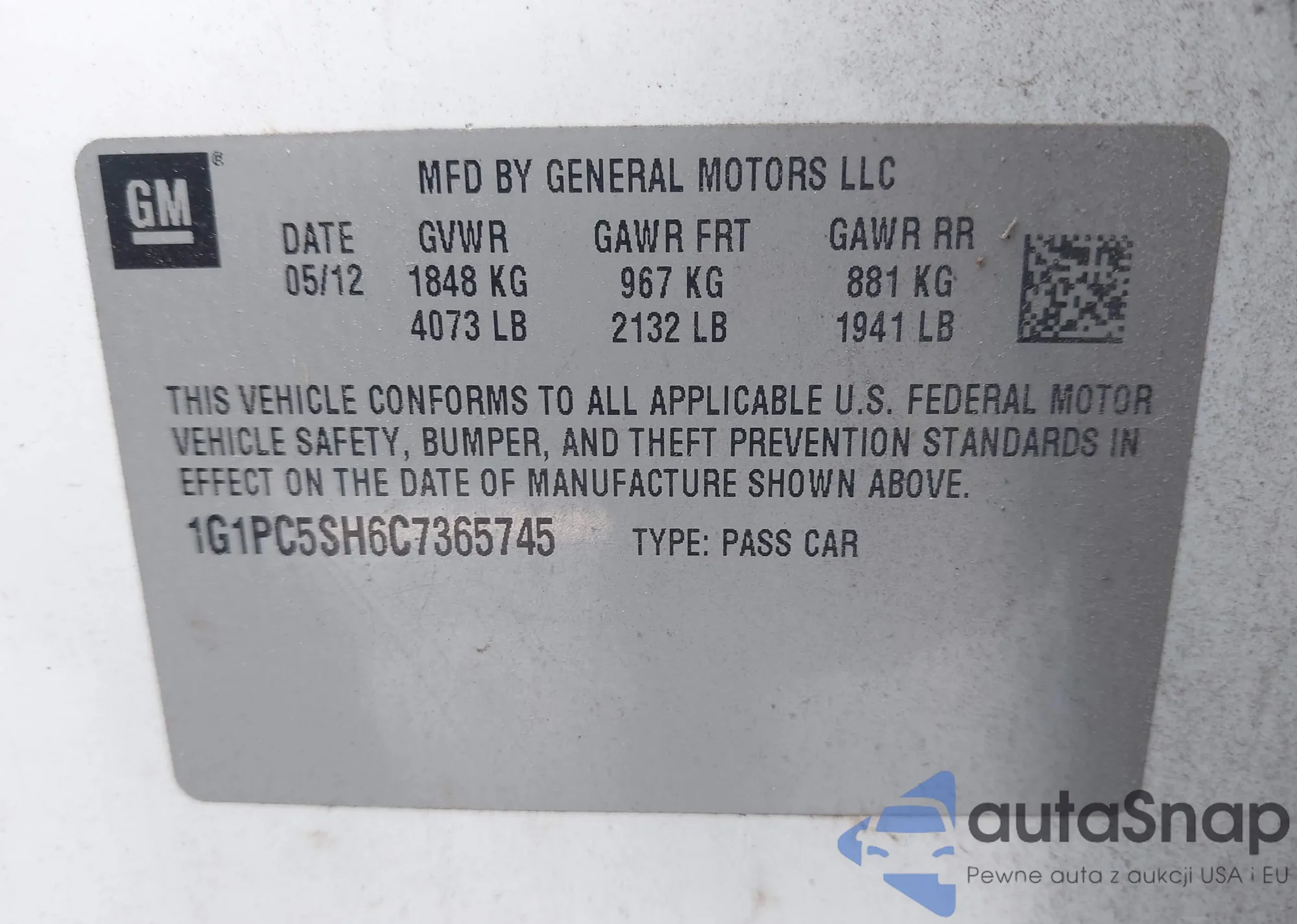 • VIN 5XXGR4A62DG232781