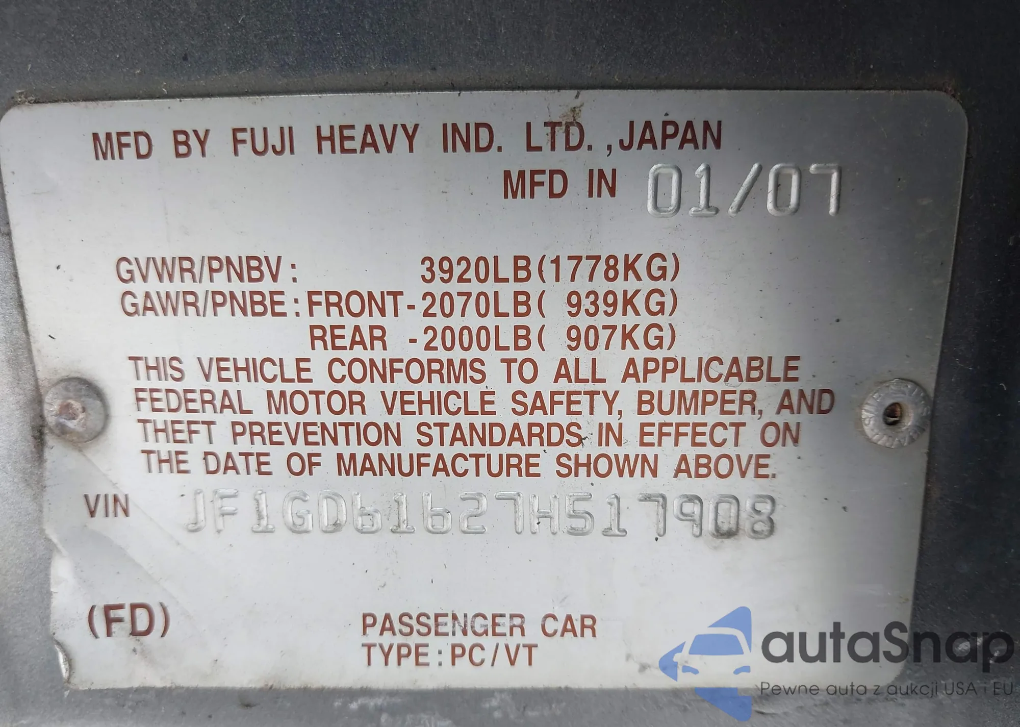 • VIN JF2GTHNC4MH244976