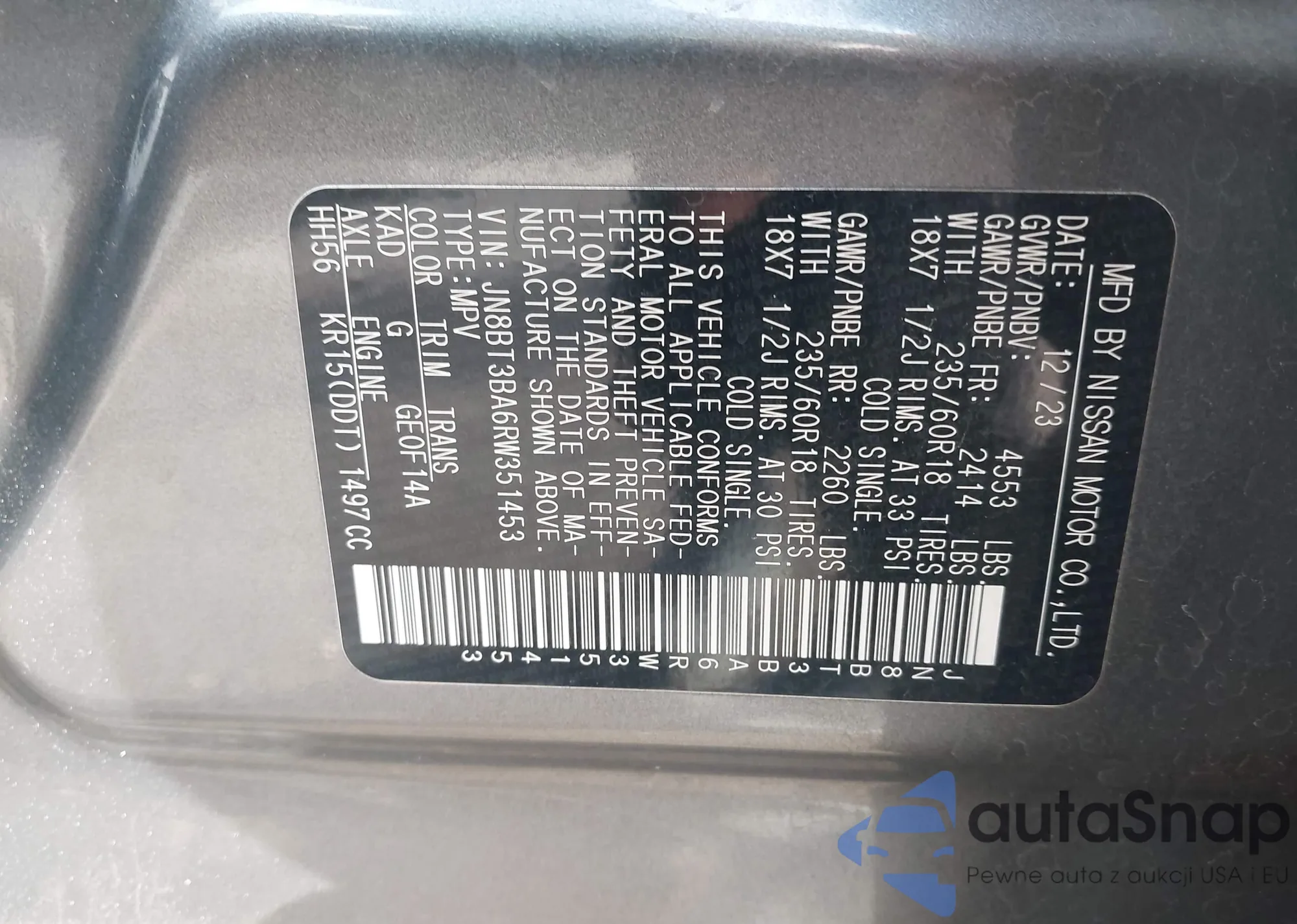 LOT: 44028981 VIN: JN8BT3BA6RW351453