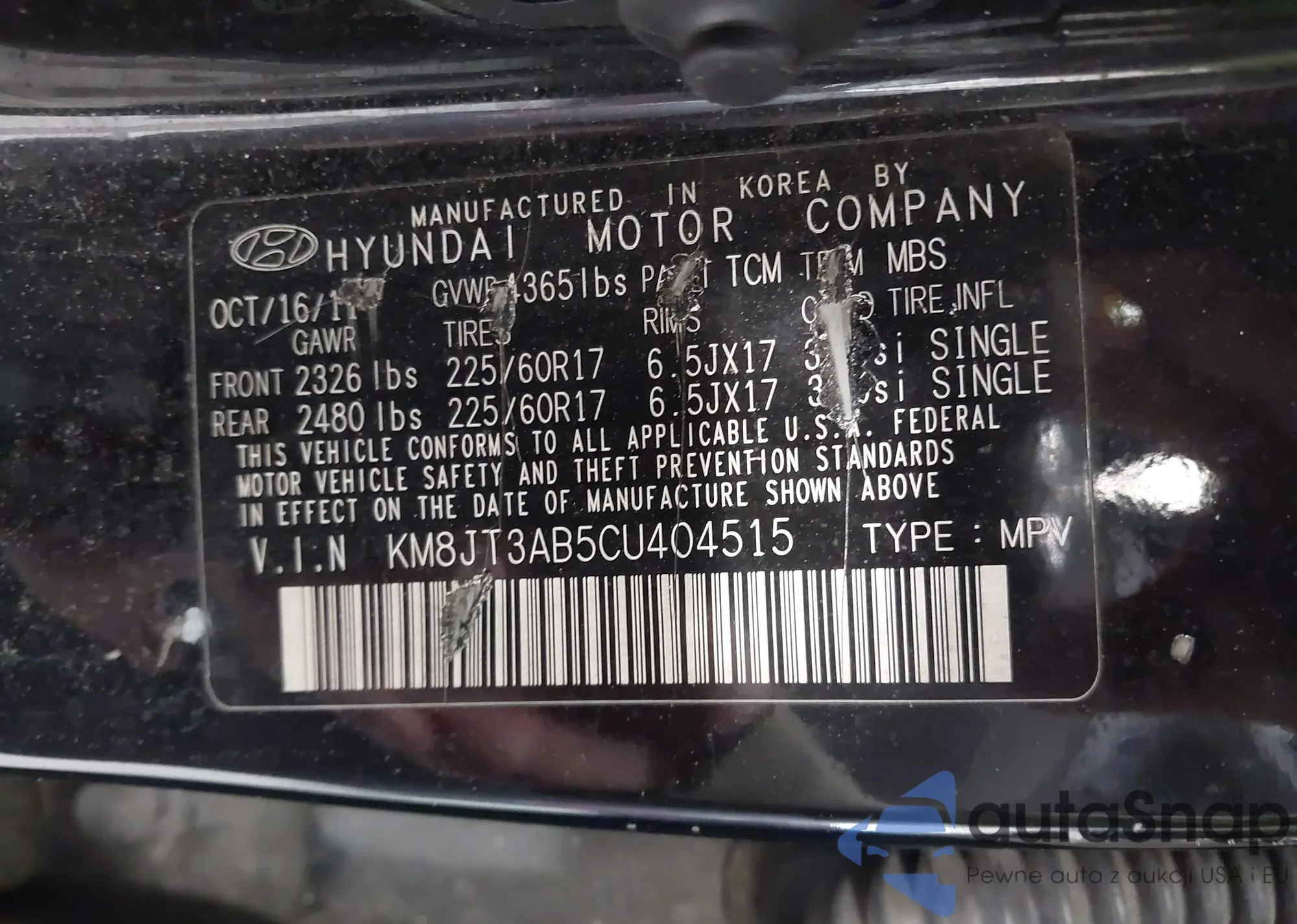 • VIN KM8JT3AB5CU404515