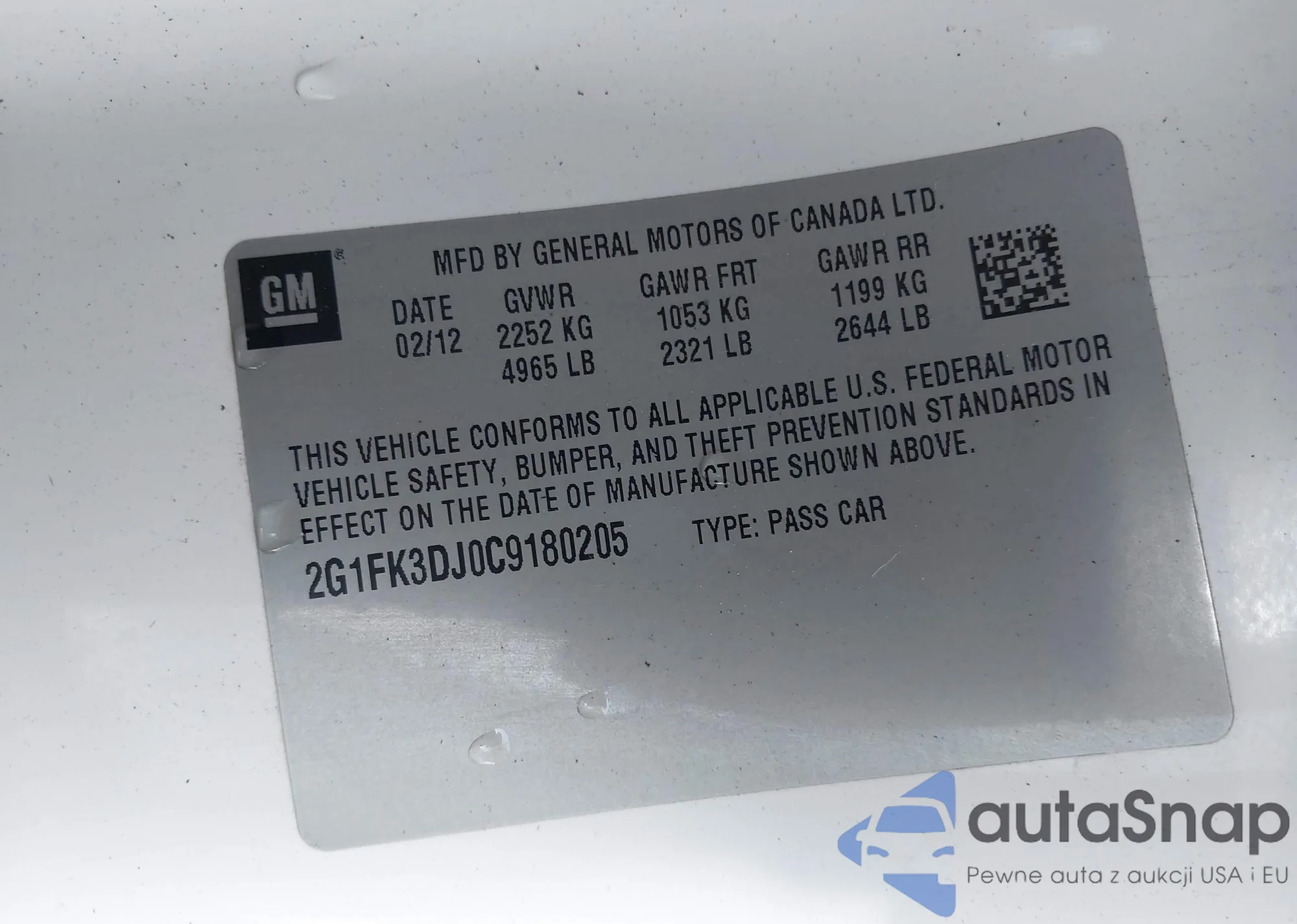 • VIN 2G1FK3DJ0C9180205