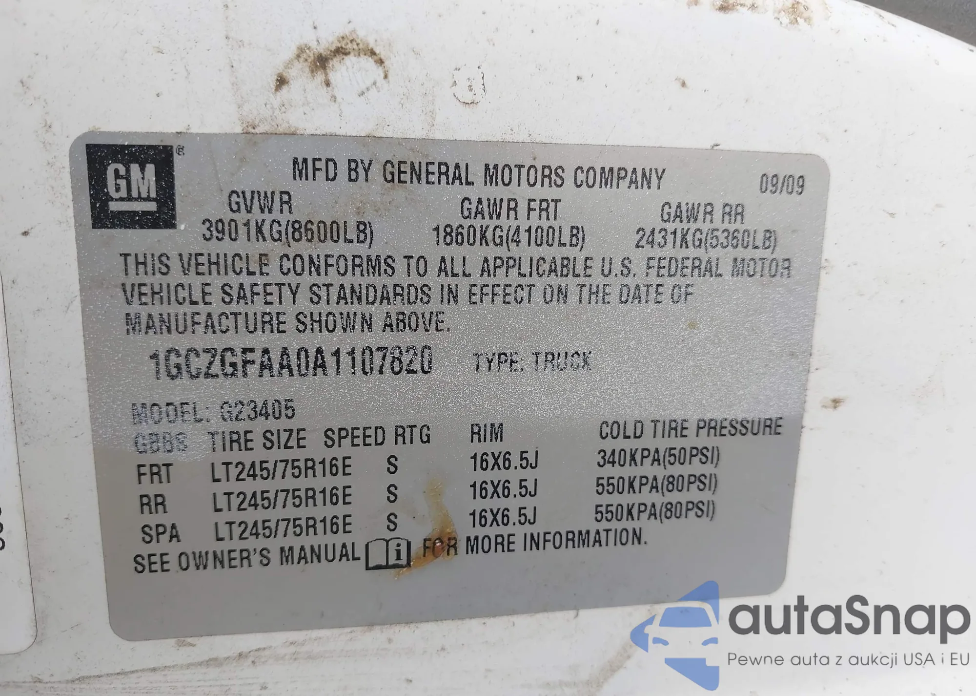 • VIN 1GCZGFAA0A1107820