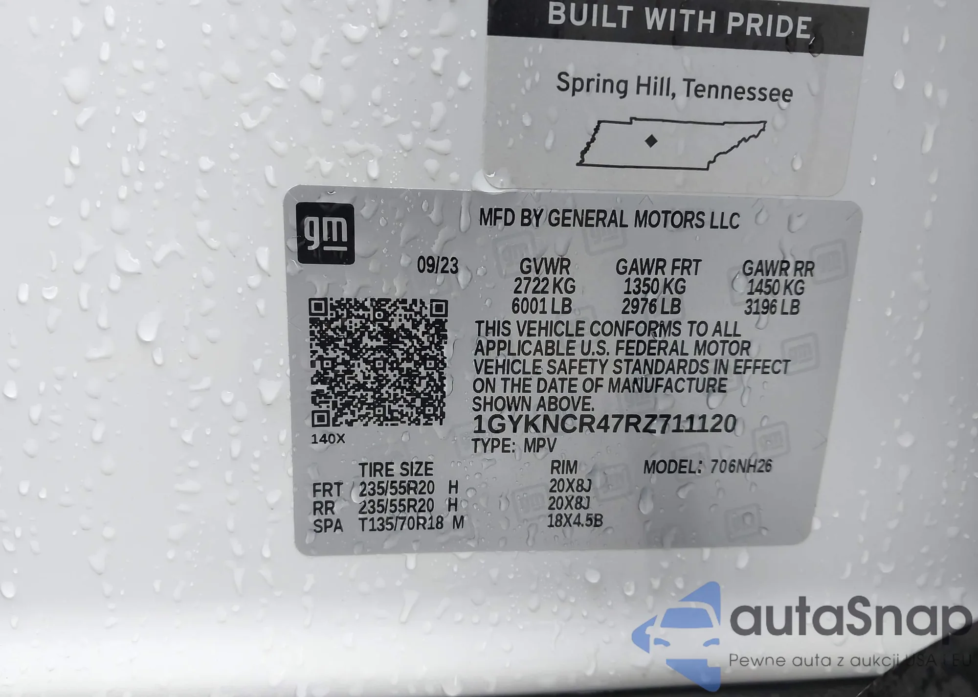 • VIN 1GYKNCR47RZ711120
