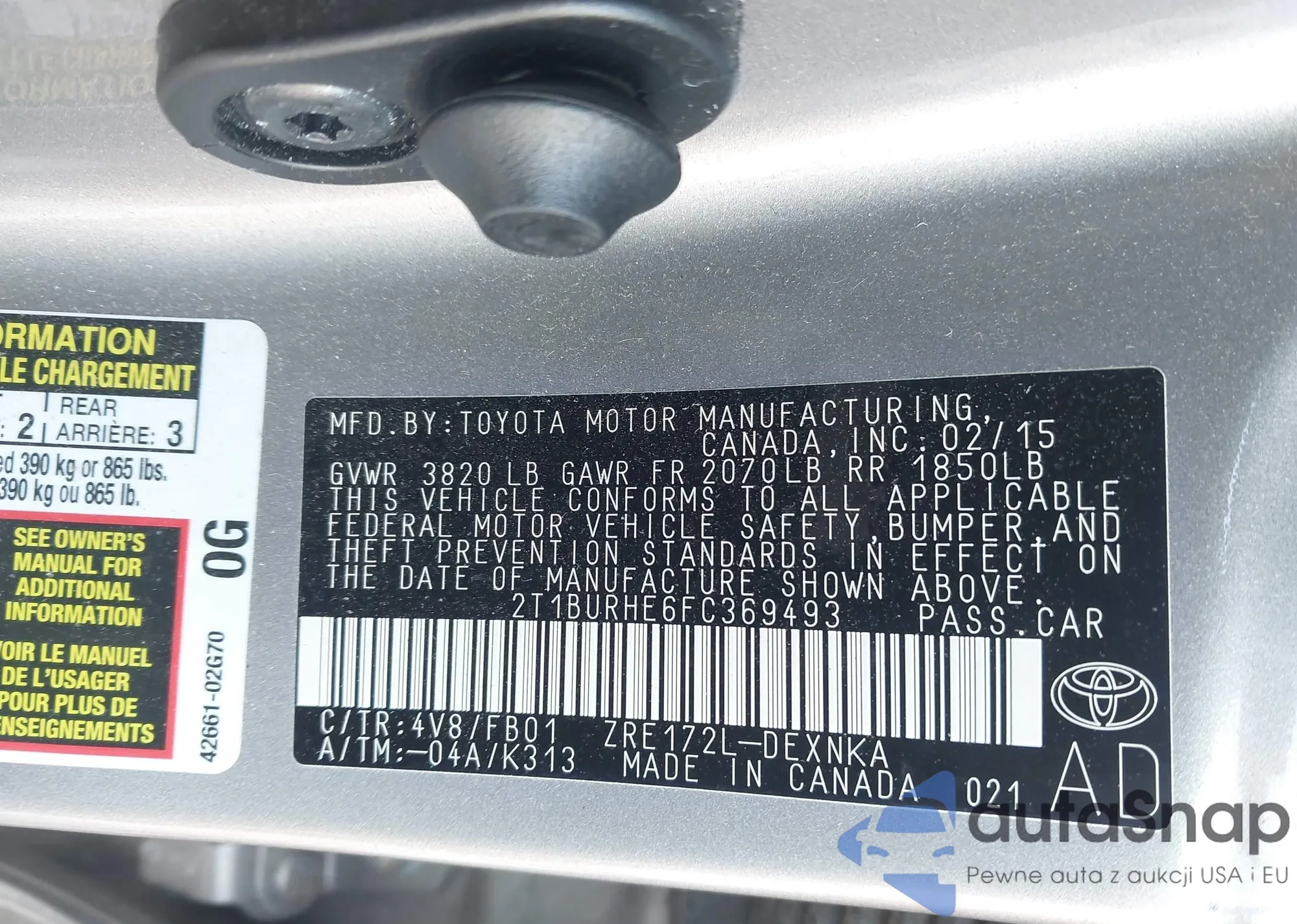• VIN 2T1BURHE6FC369493