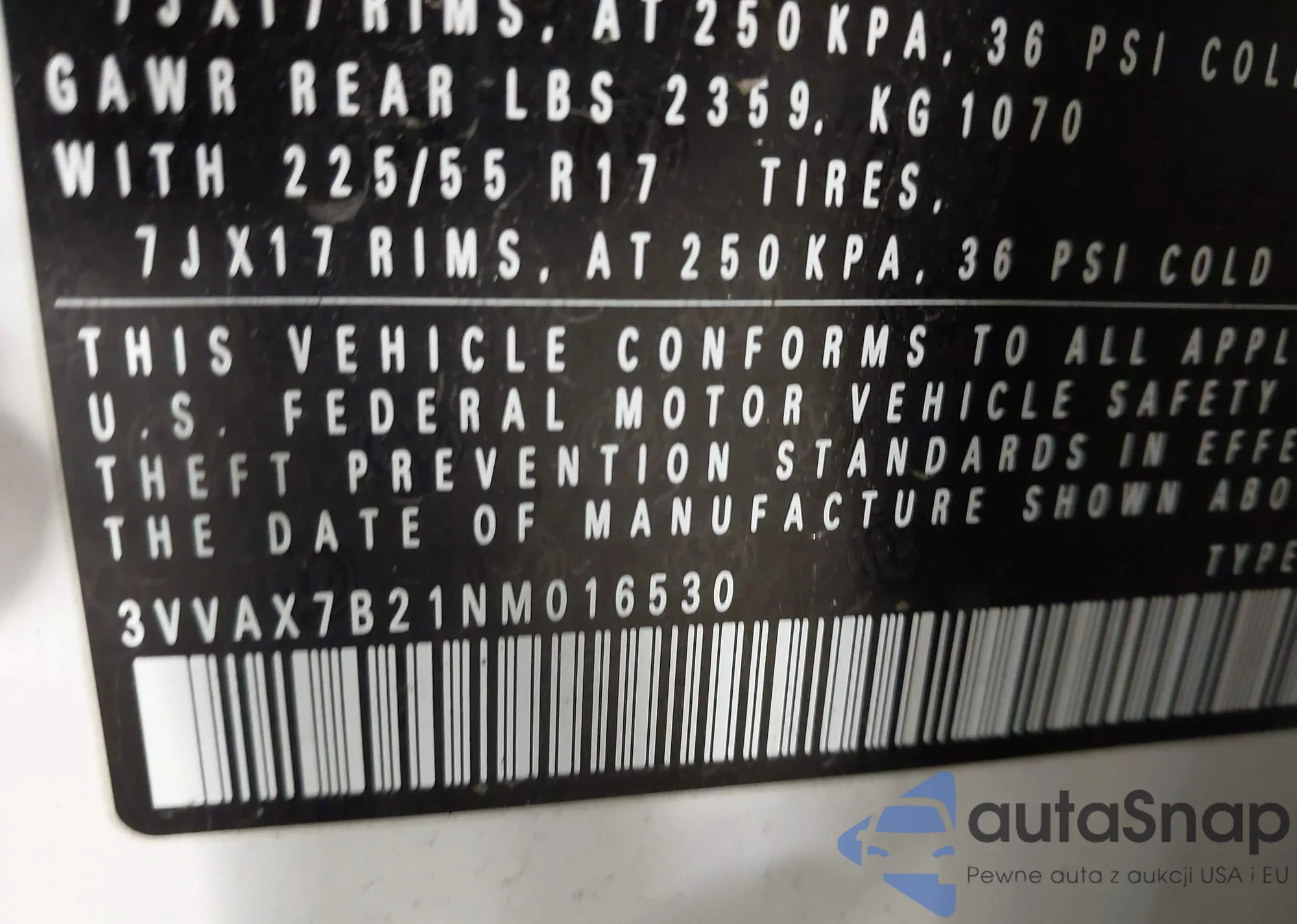 • VIN 3VVAX7B21NM016530