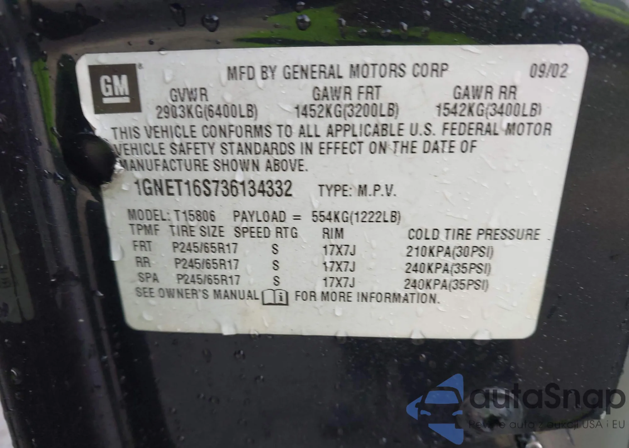 LOT: 44100031 VIN: 1GNET16S736134332