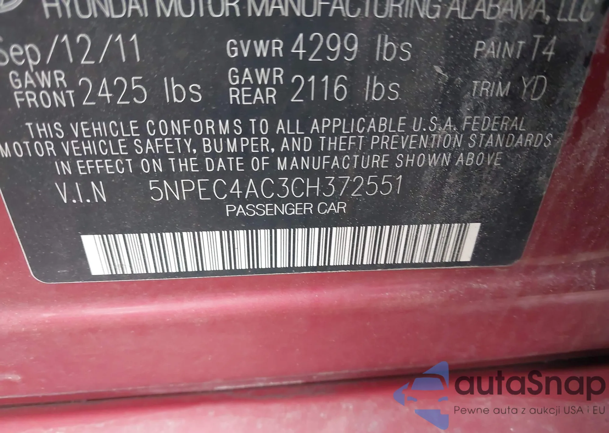LOT: 44116826 VIN: 1N4AL2AP0BN401840