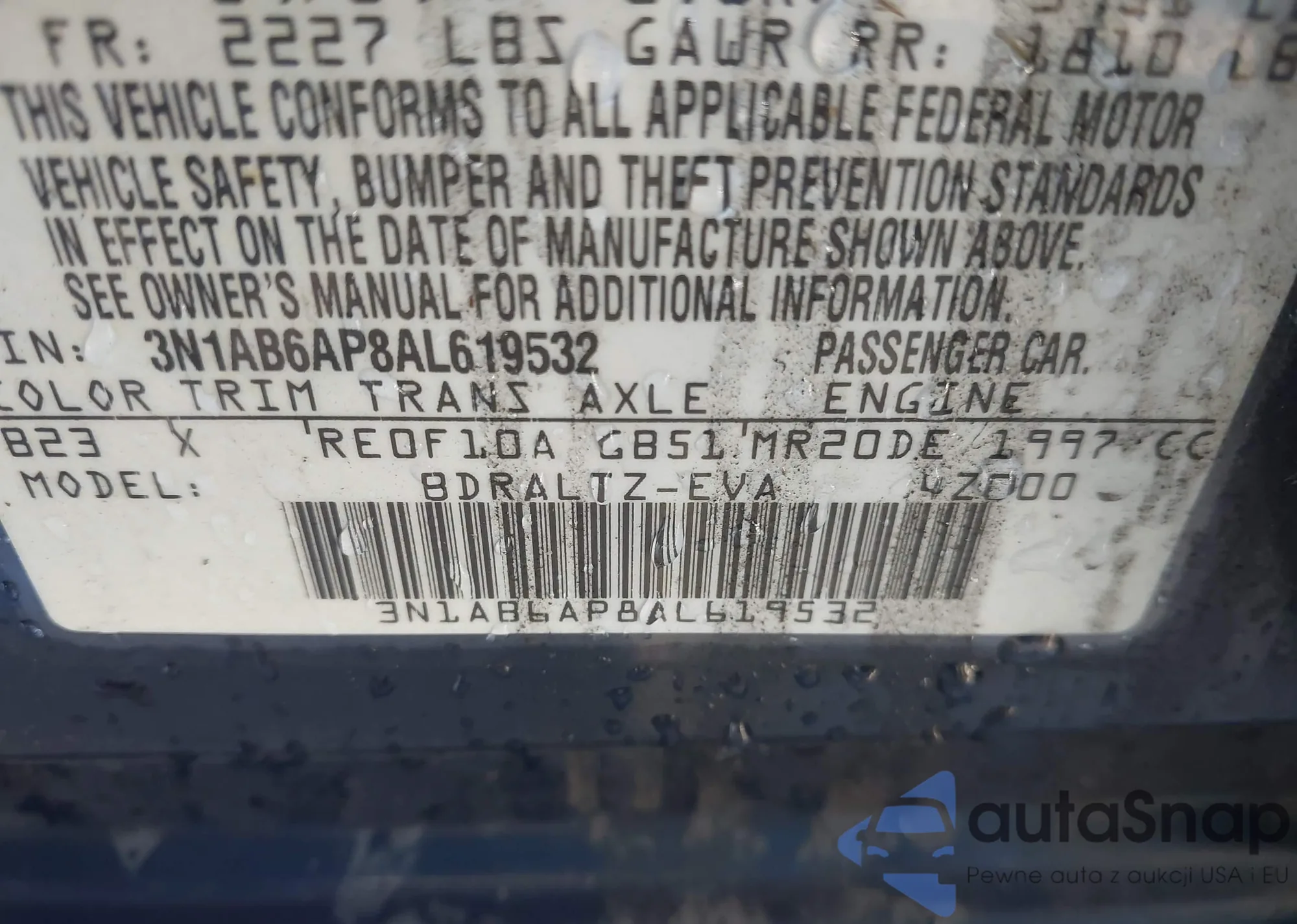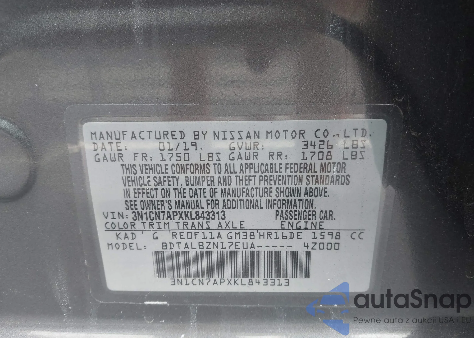 • VIN 3N1CN7APXKL843313