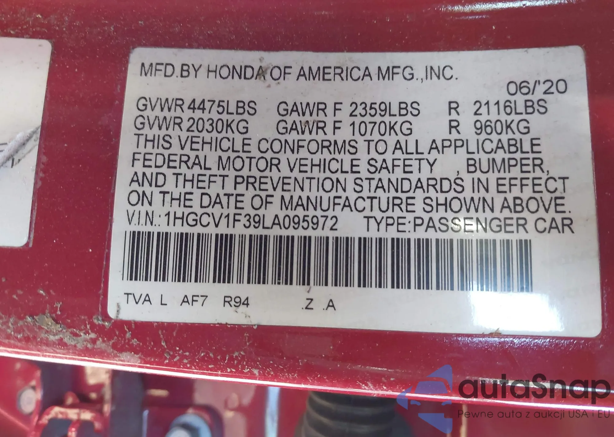 LOT: 43935292 VIN: SHSRD788X4U236590