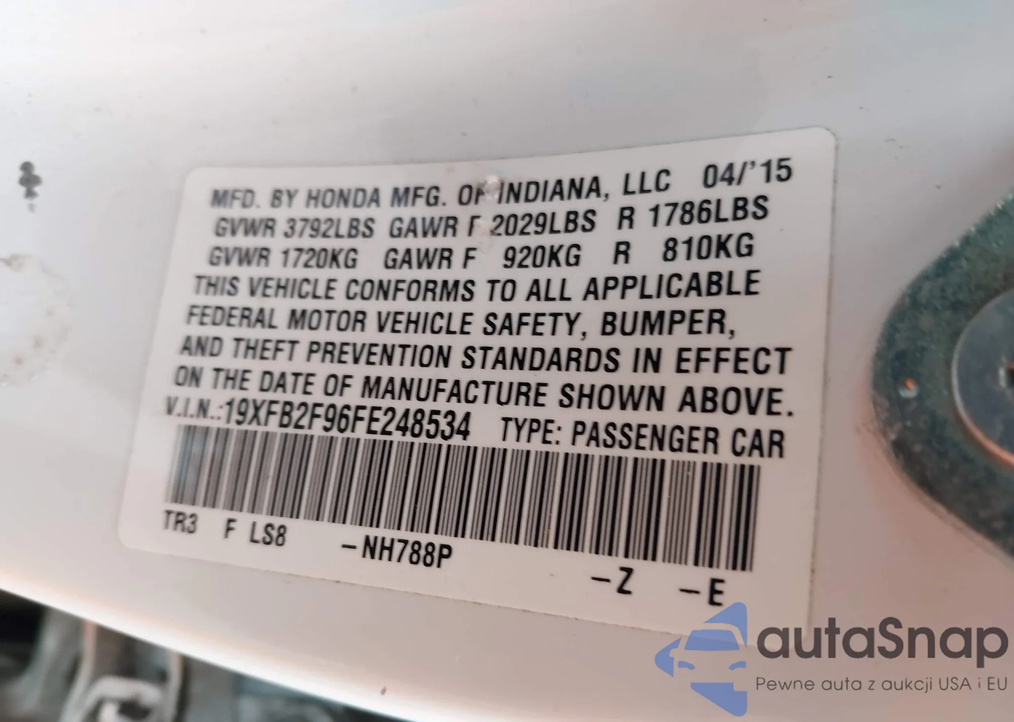 • VIN 19XFB2F96FE248534