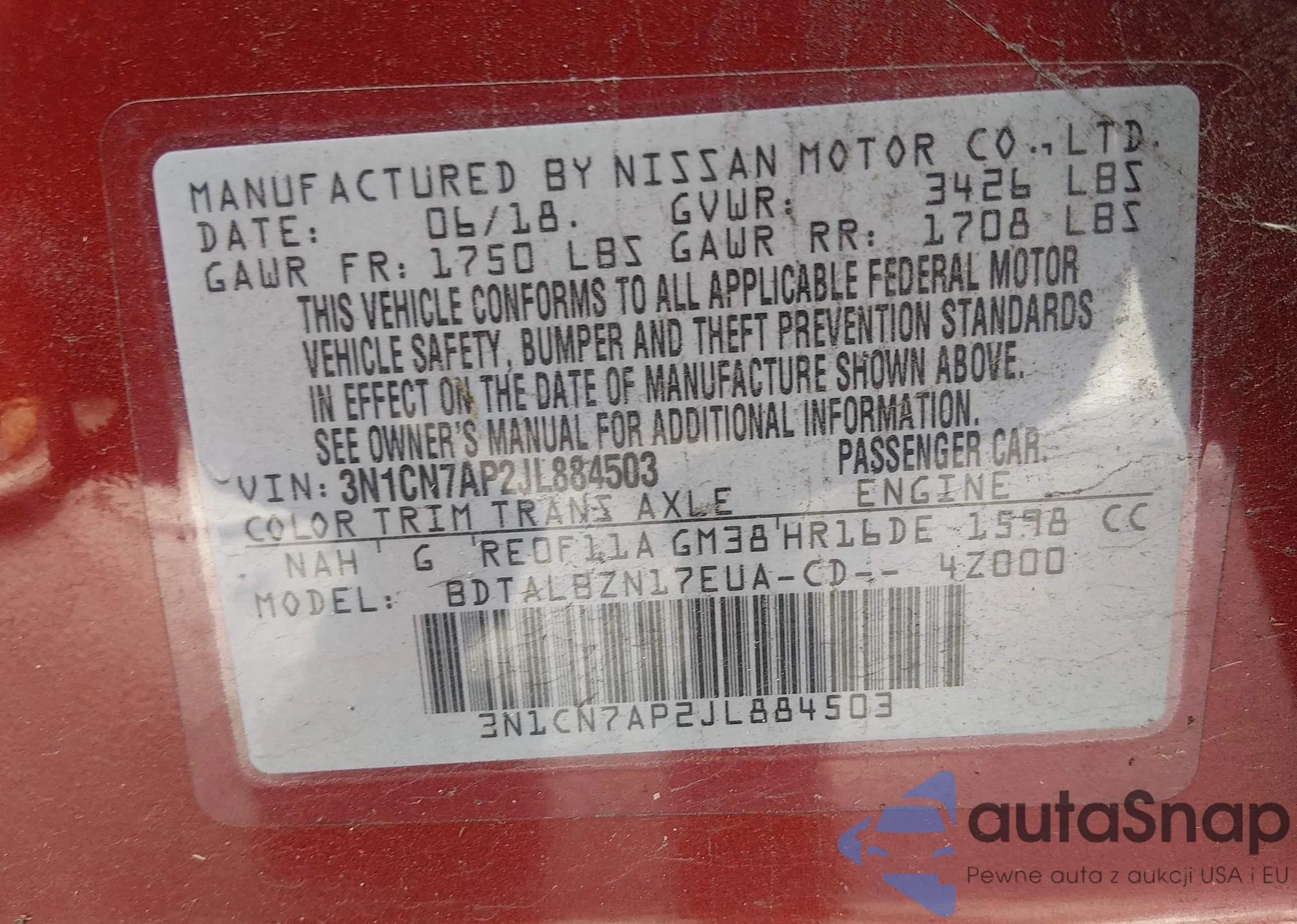 • VIN 3N1CN7AP2JL884503