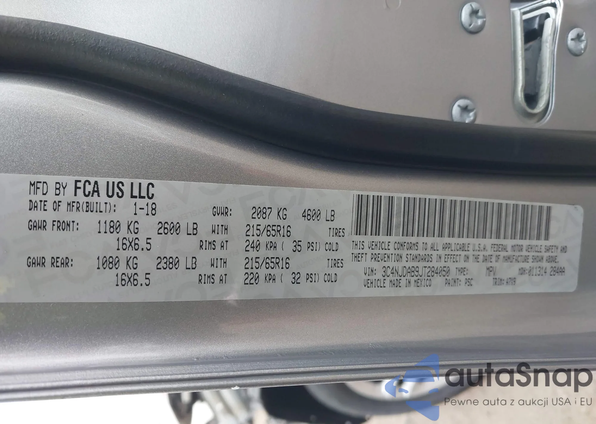 • VIN 3C4NJDAB9JT284050