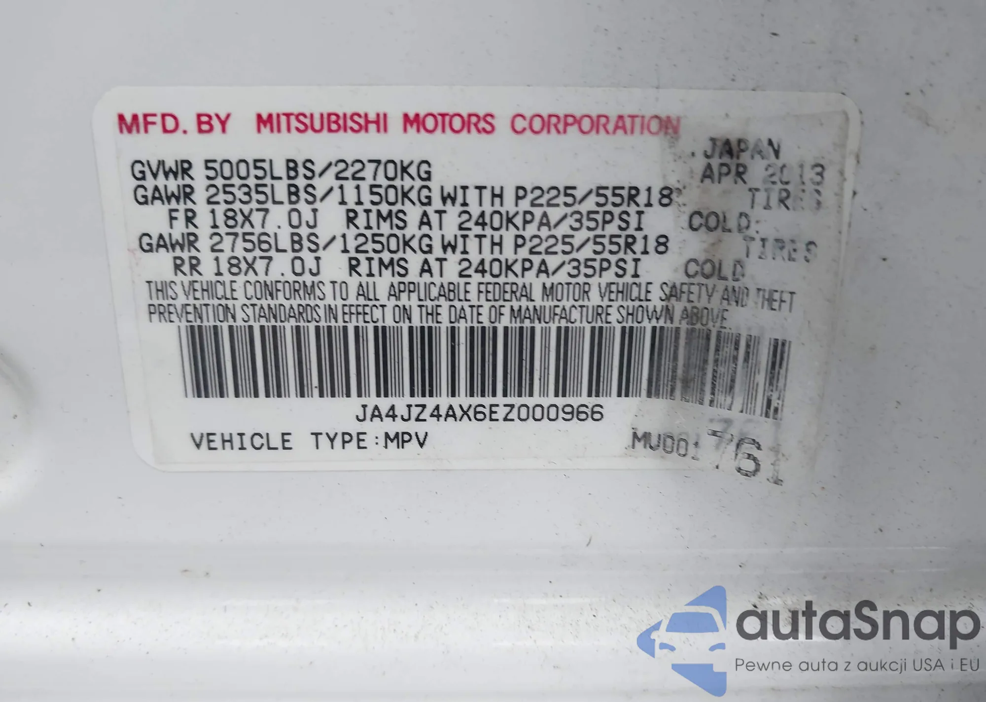LOT: 44192157 VIN: 5FNYF4H5XEB030172